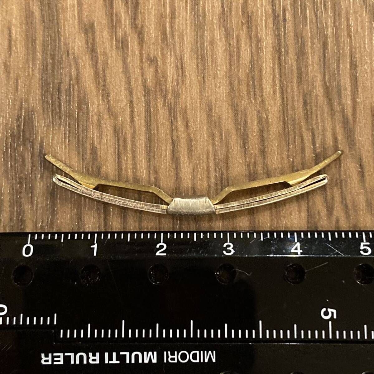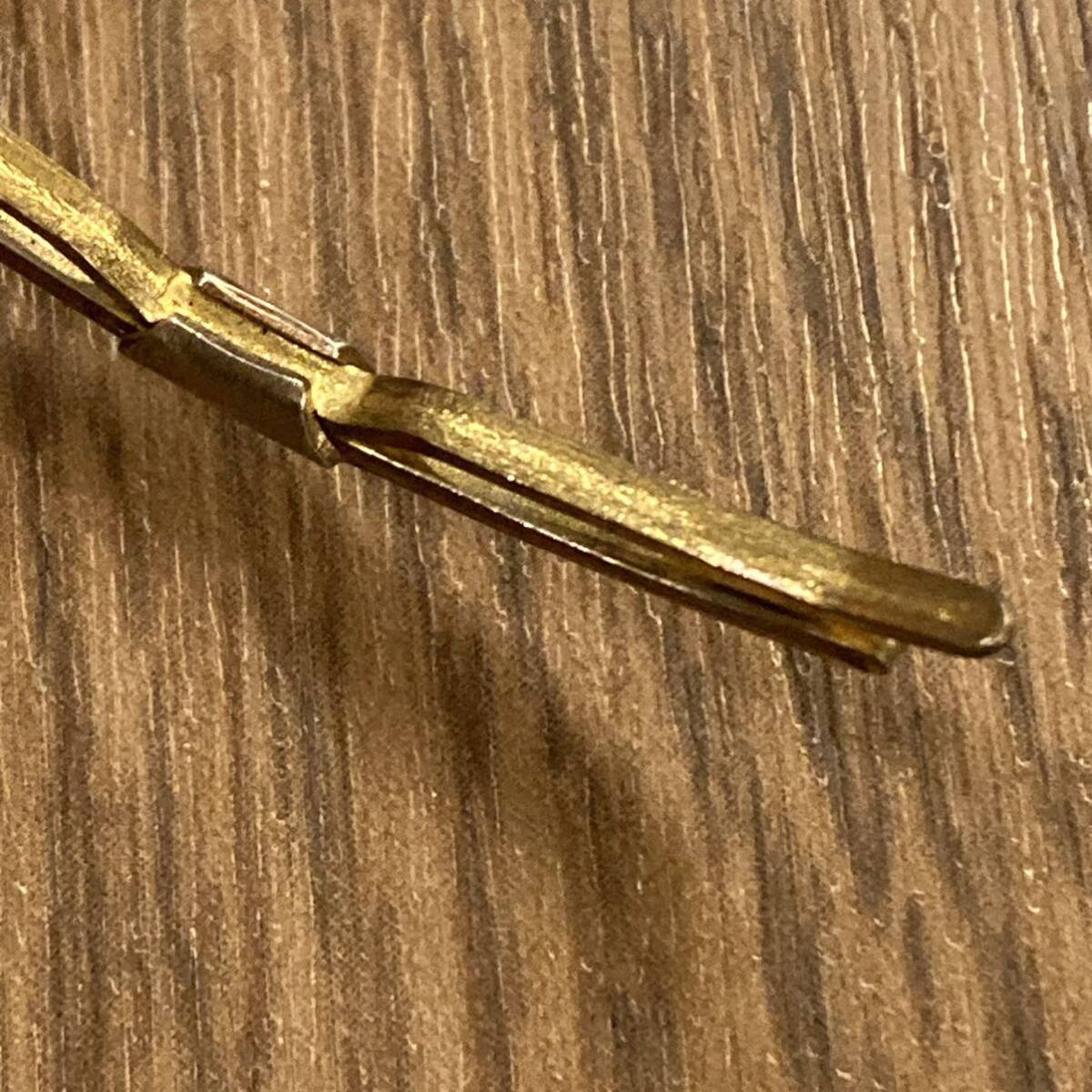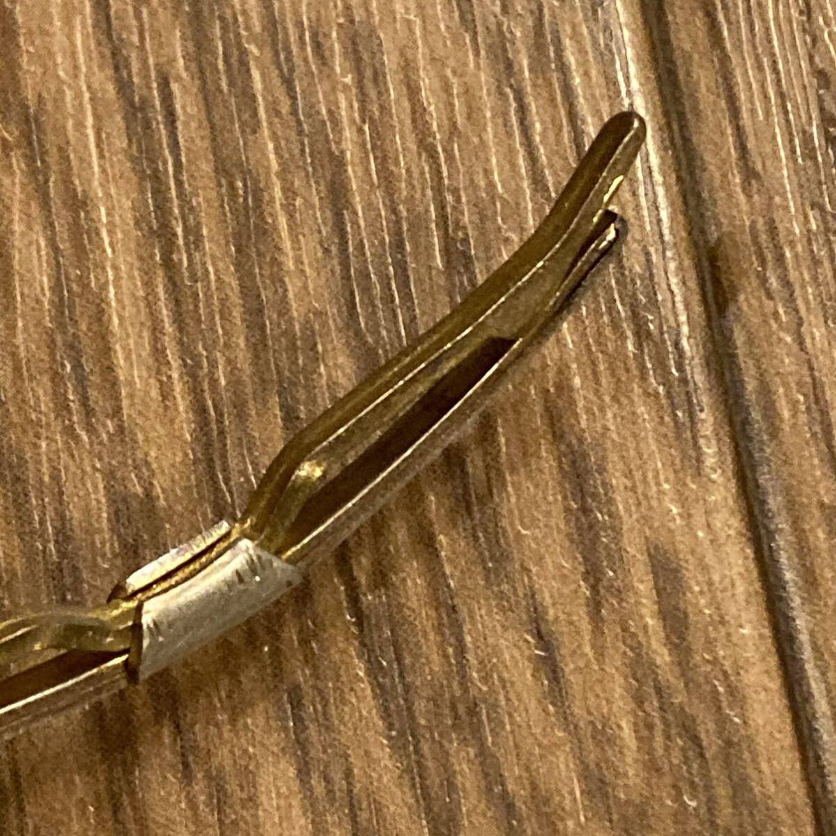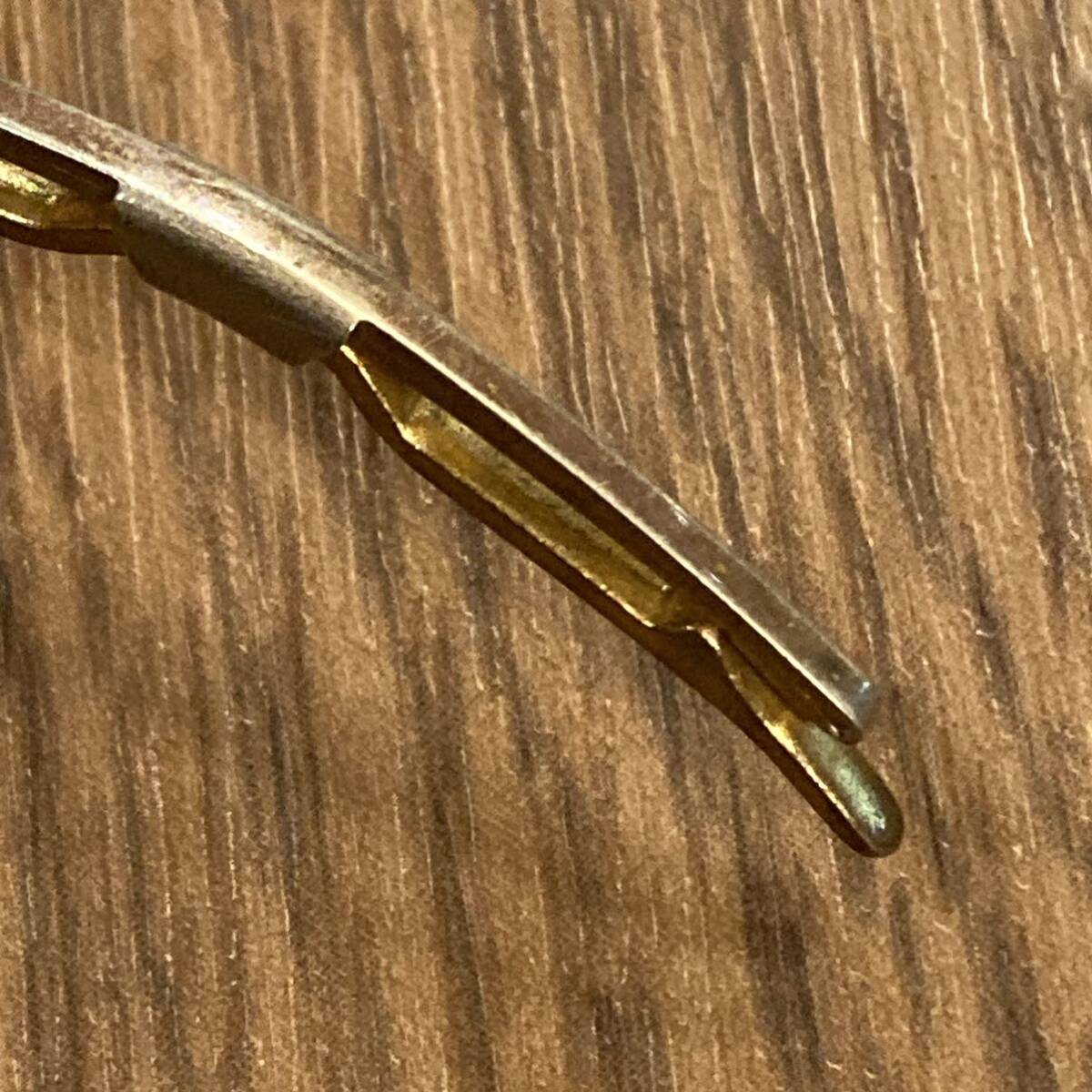ゴールドトーンのプレートを折り曲げた珍しいタイプです。