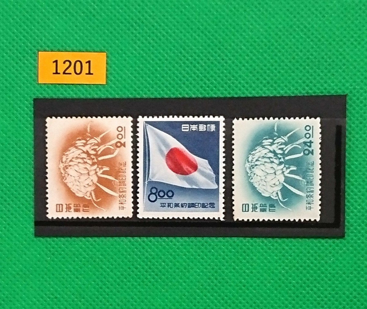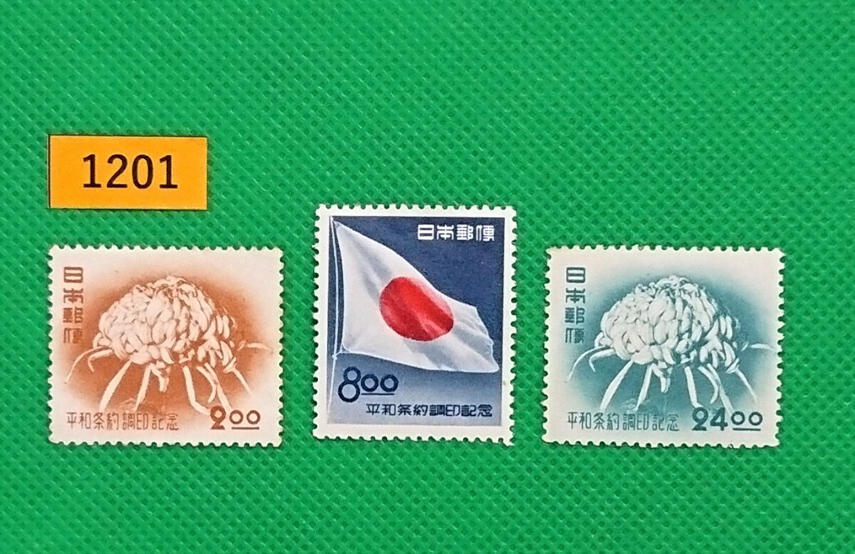 平和条約/3種完品/1951年/昭和26年発行/2.oo,8.ooLHシミ有り/24.oo糊落ち/記念切手/昭和レトロ/カタログ価格5,700/№1201