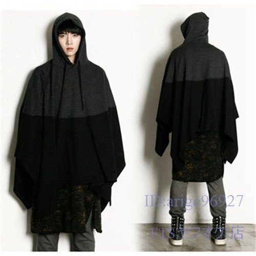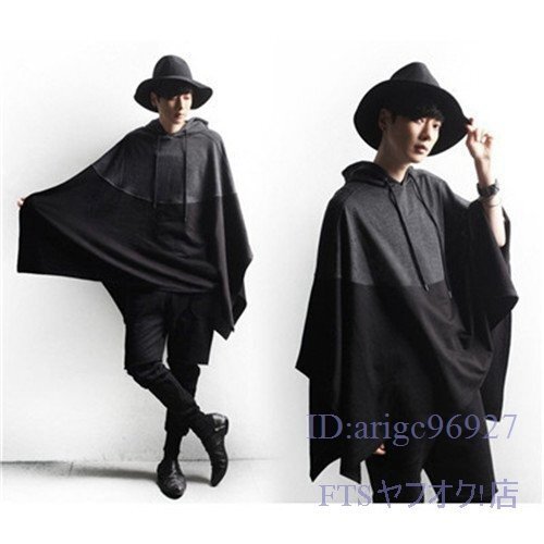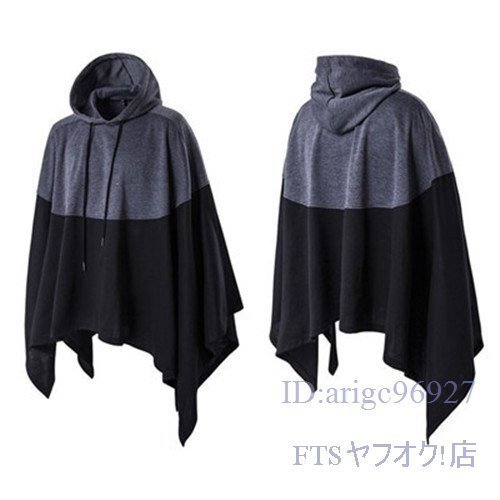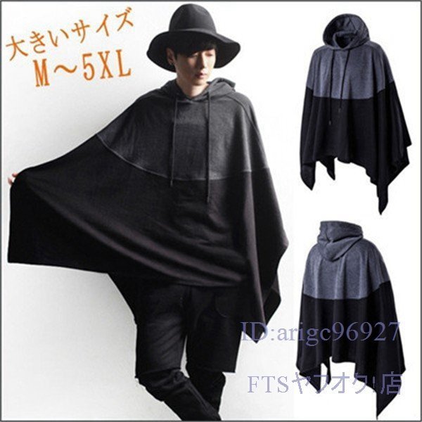T224☆新品春秋メンズ パーカー マント ポンチョ プルオーバーパーカー バイカラー ケープ 個性的 コート コーディガン 大きいサイズ M~5XL