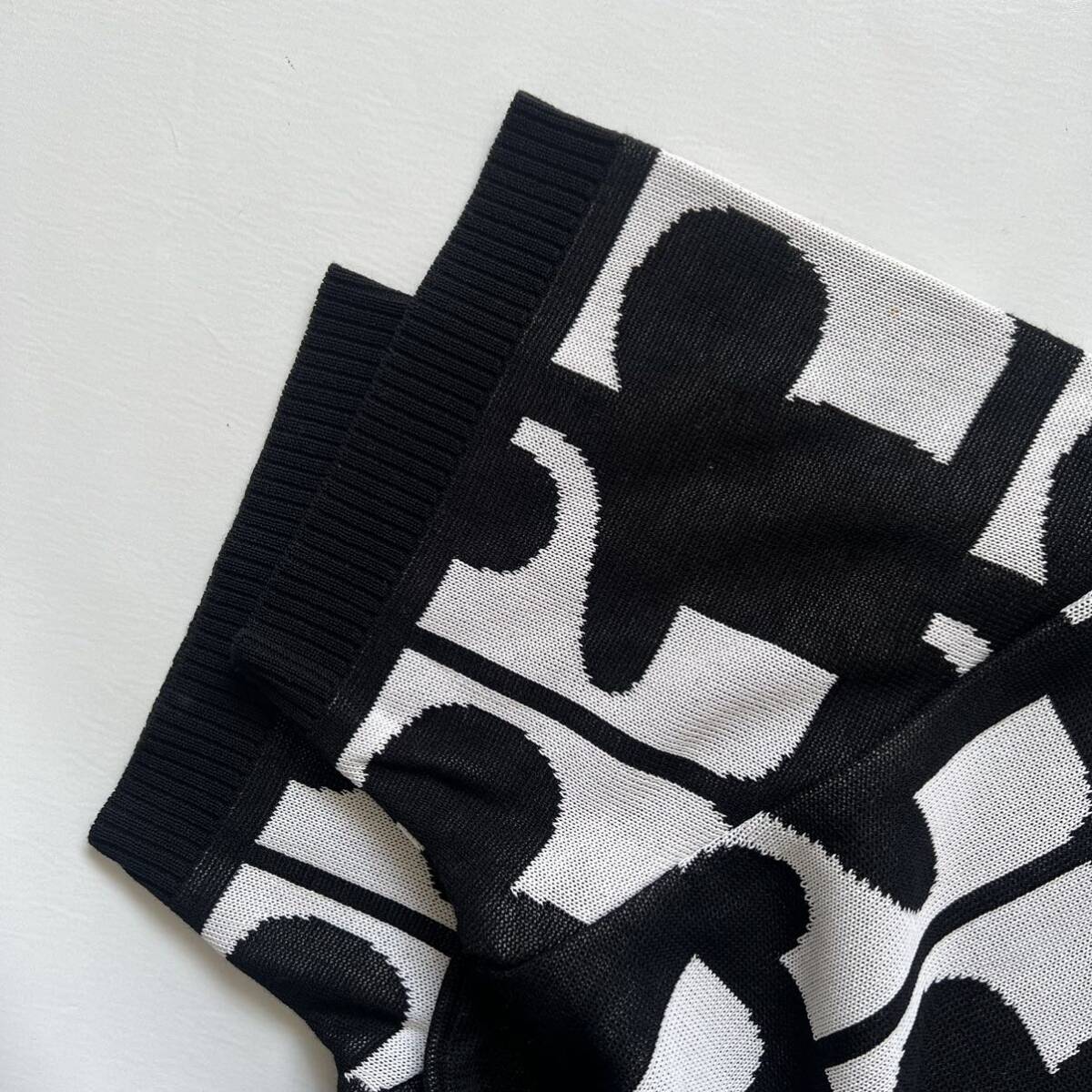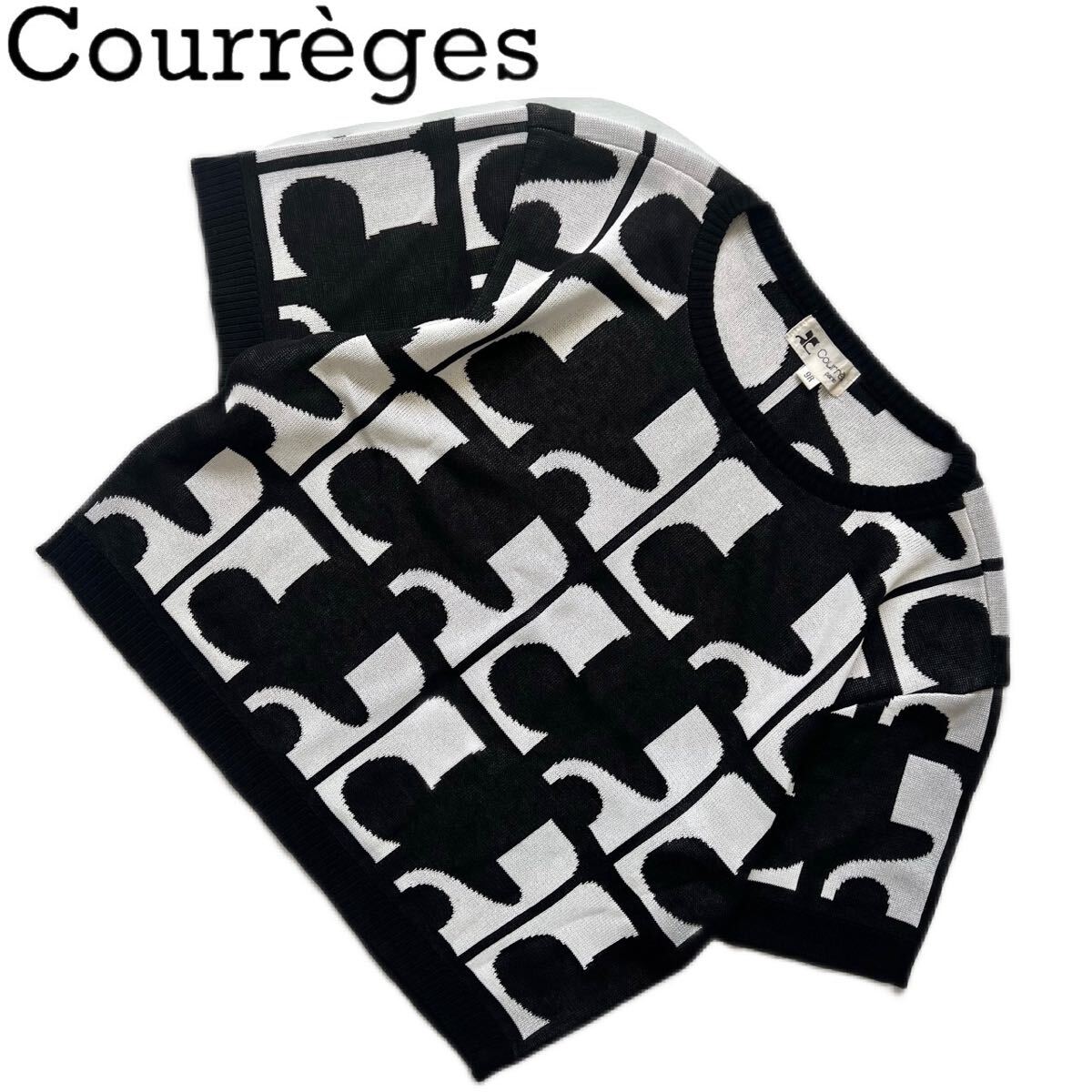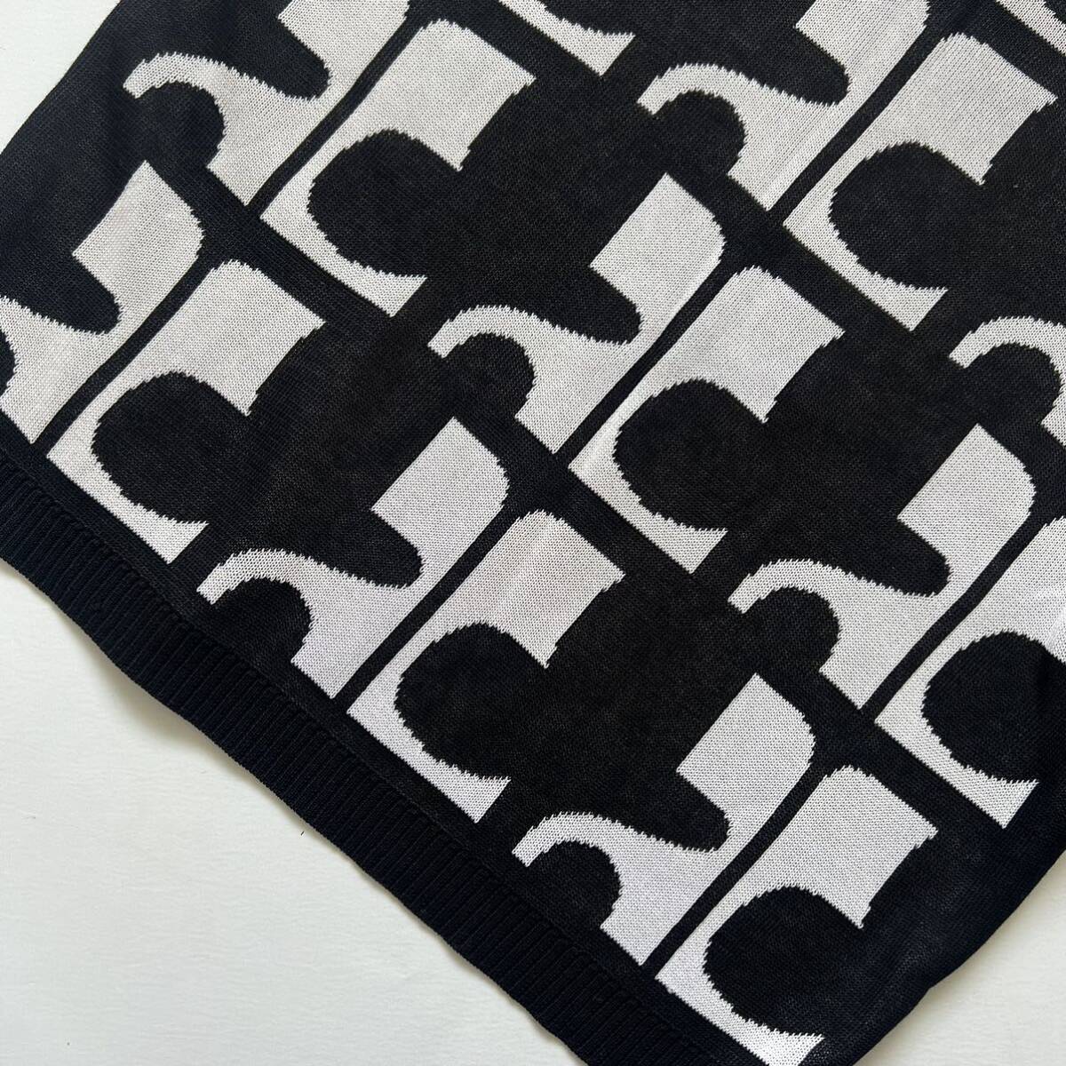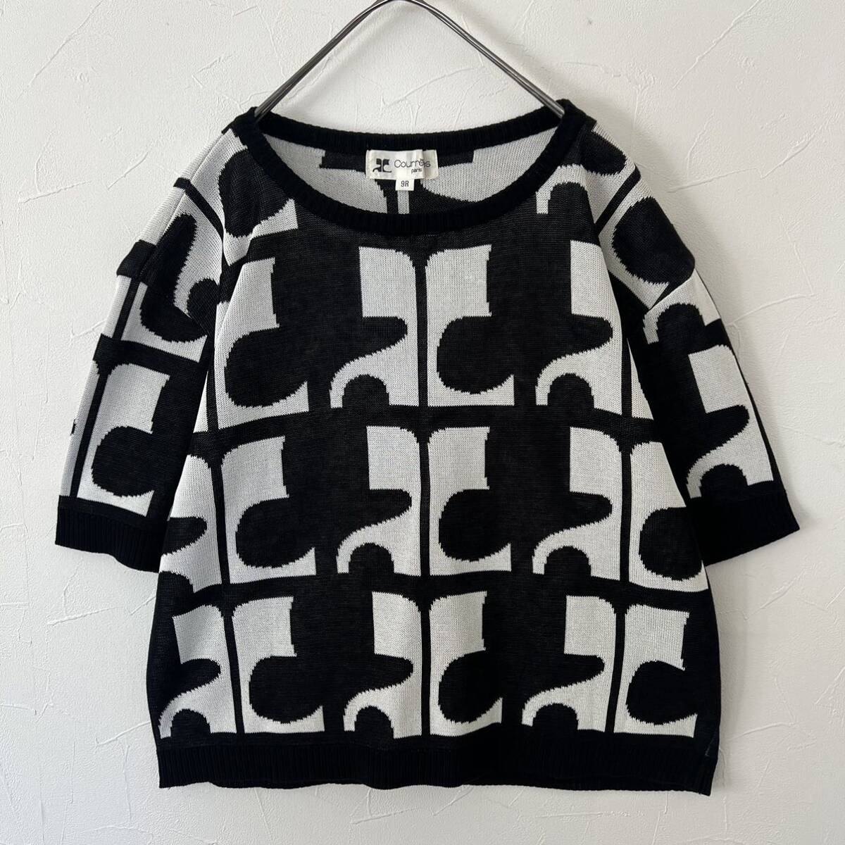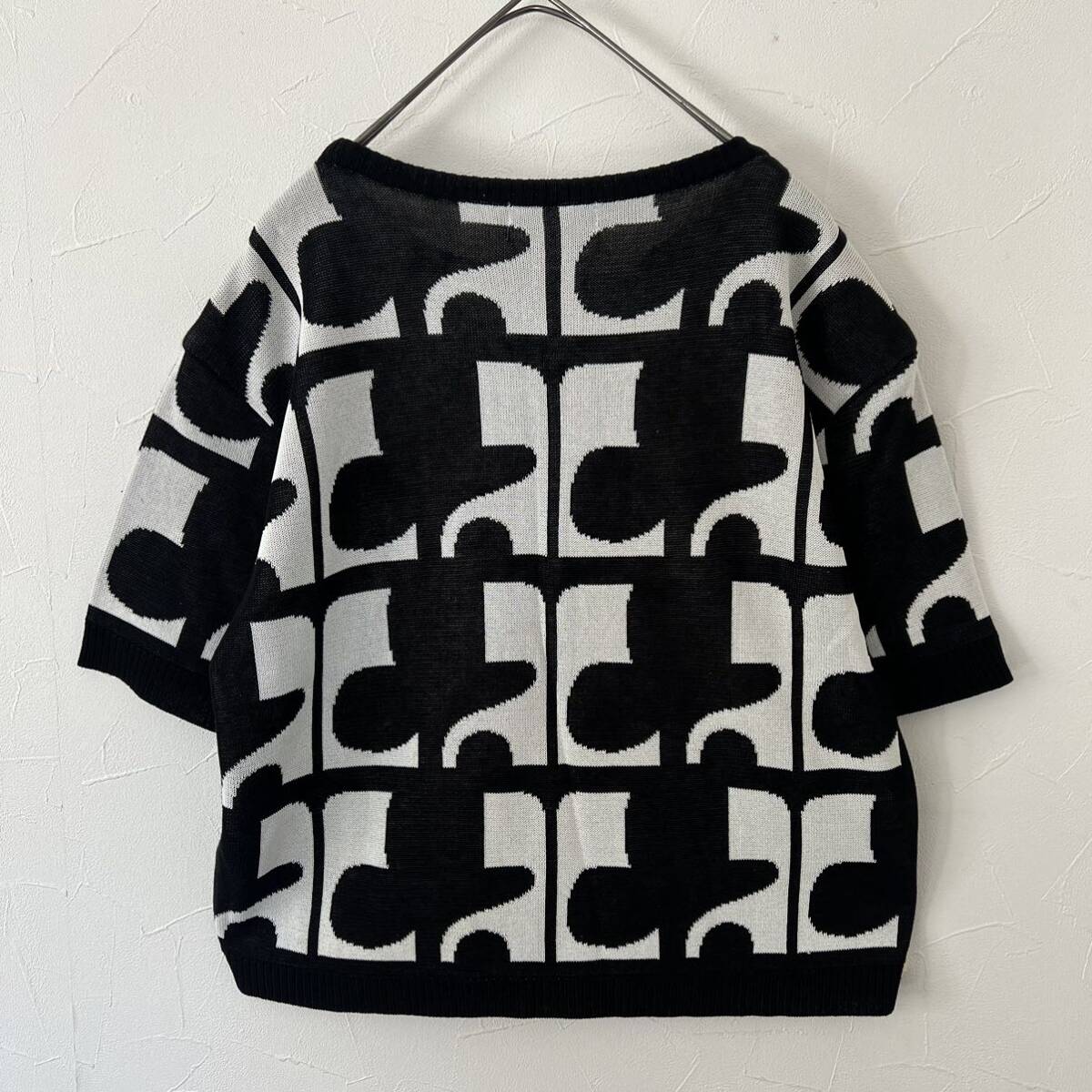 《デザイン》総柄 ロゴ 半袖 ニット セーター レディース クルーネック