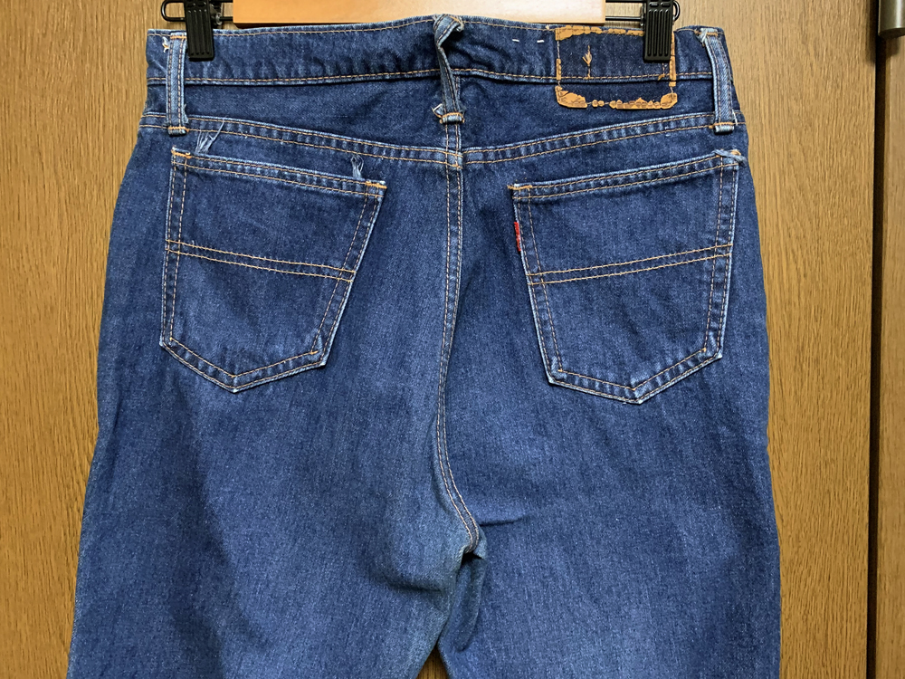 ボタン付近のウエスト上側のステッチにほつれがあります。