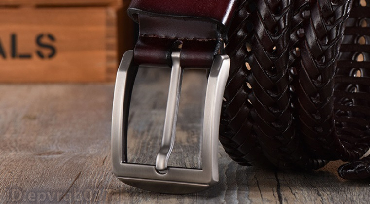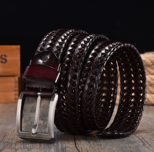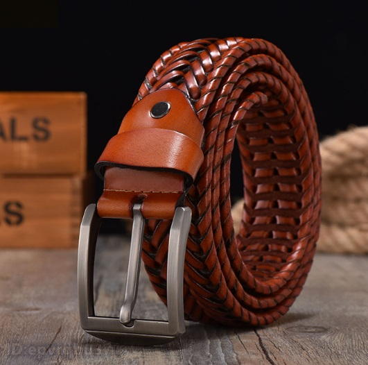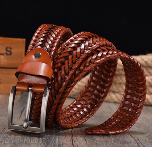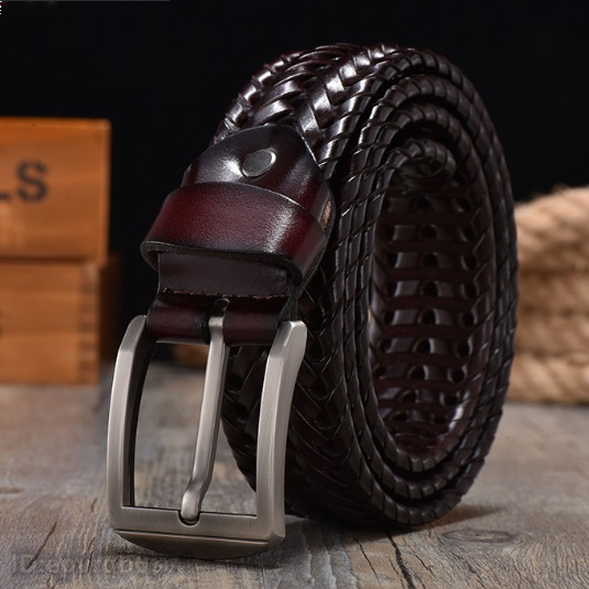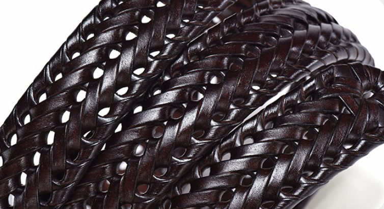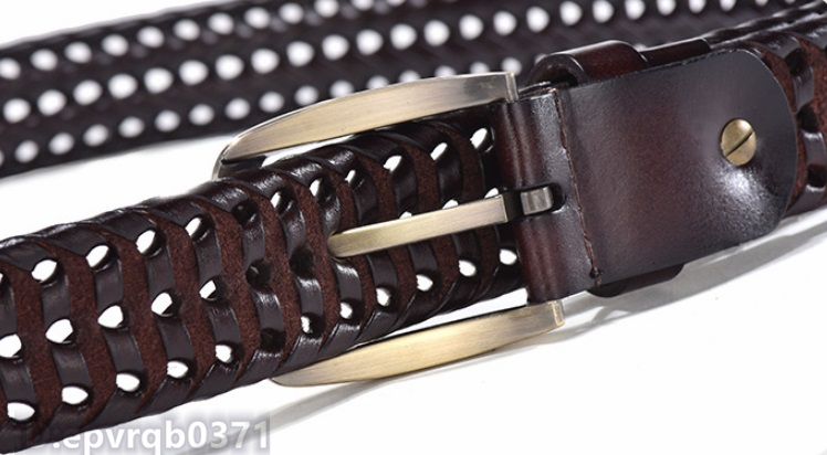 レザーベルト※新品 本革牛革 編み込み式 ピンバックル 穴付き メンズ ゴルフベルト 紳士 革ベルト 長さ調整可能 2色選ぶ/ブラウン