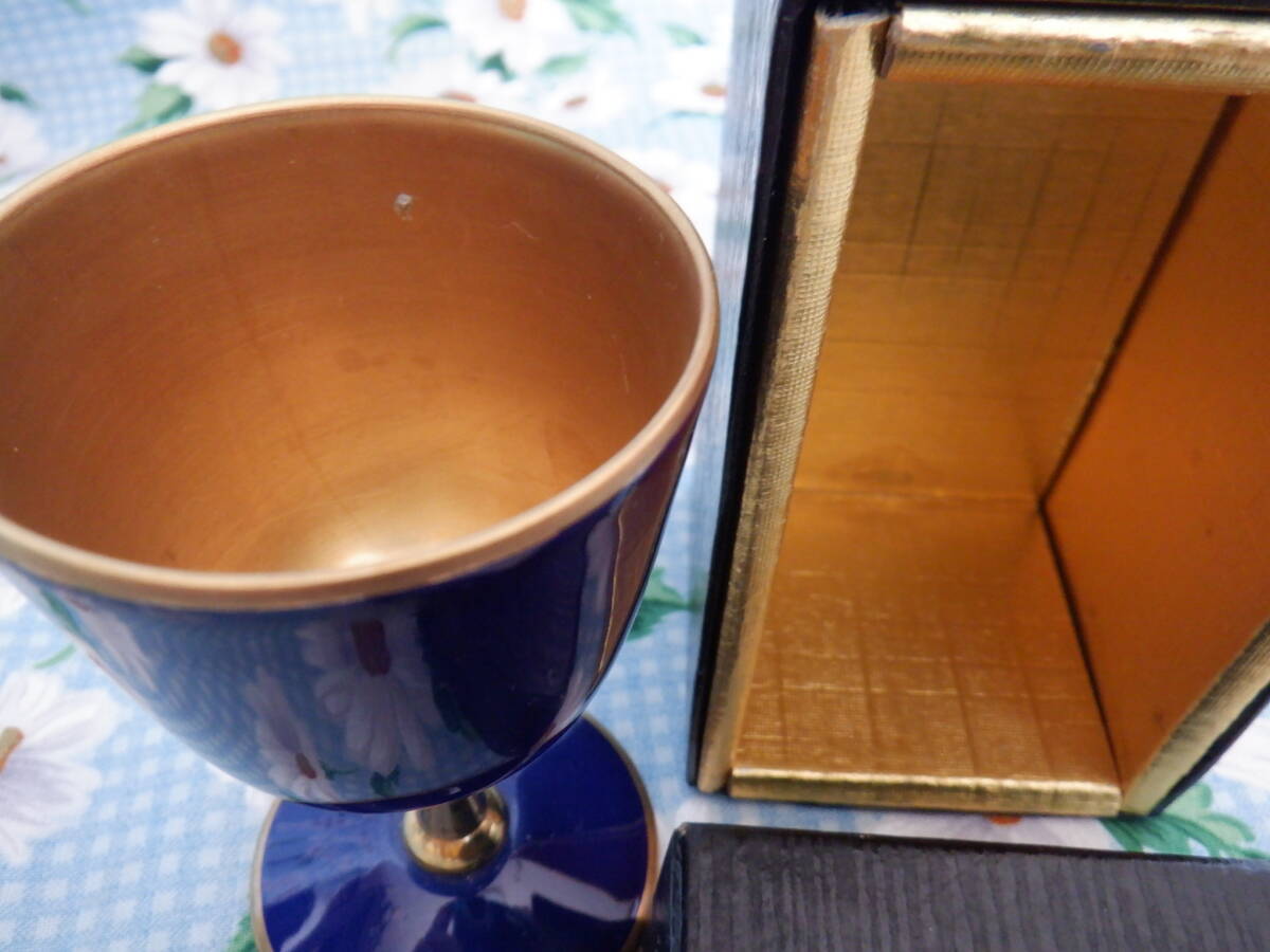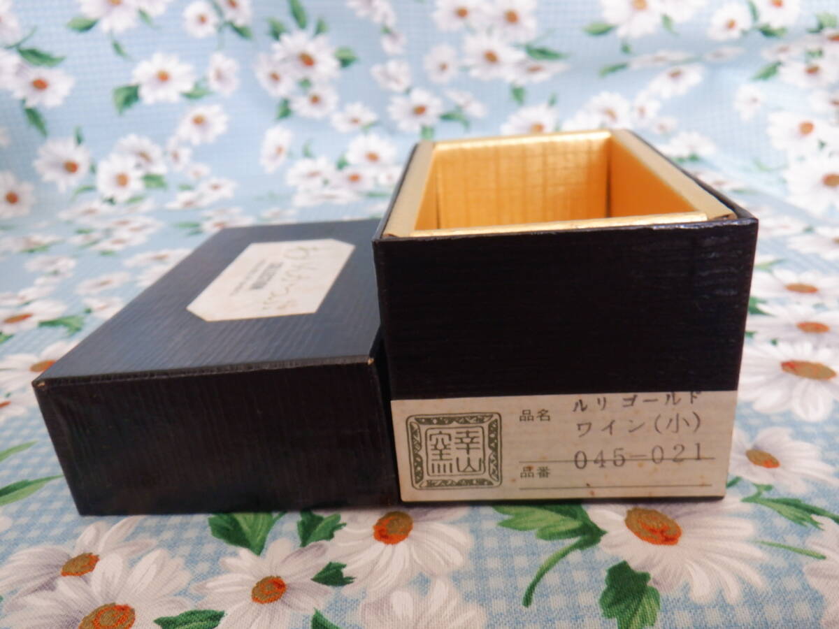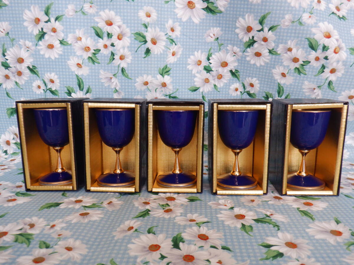 有田焼 『幸山窯 ワインカップ 金彩 ルリゴールド~5個セット』~箱付き 1個にカップの内側にキズ、外箱に内側・外側に汚れありになります。(画像6・7の商品になります。画像2の真ん中のワインカップになります。)ワインカップのサイズですが、口径4.5cm、高さ8.2cmになります。採寸の方ですが、多少の誤差はお許し下さい。食前酒や、お正月などにいかがでしょうか?1個のワインカップの内側に小さなキズがあり、外箱の内側と外側に汚れがありますので、ご理解いただける方のみ入札をお願いいたします。自宅にて長期保管品につき現状渡しとなります。ノークレームノーリターンでお願いいたします。神経質な方は、入札をご遠慮下さい。新規の方・悪い評価が多い方の入札は、こちらの判断で取り消すことがあります。