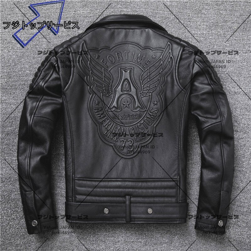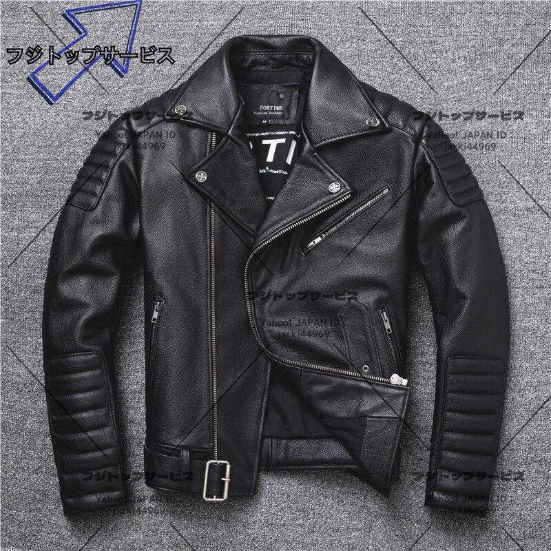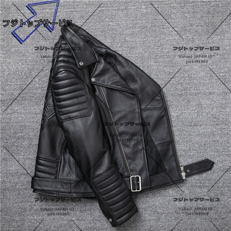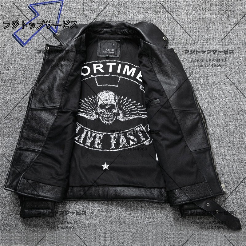 レザージャケット 上品 本革 ドクロ カウハイド ライダース ジャケット メンズファッション バイクジャケット 牛革  革ジャン