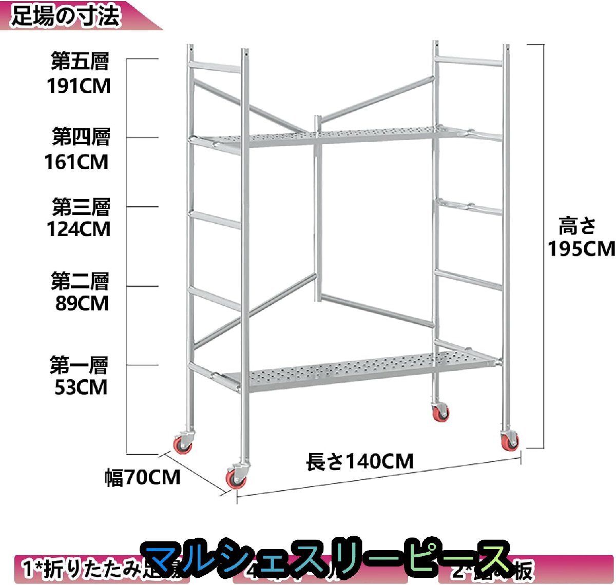 高所作業台 足場台 作業用踏台 作業台折りたたみ 移動足場 ステップ 折りたたみ足場 軽量 持ち運び便利 (195*70*140CM, 滑り止め)