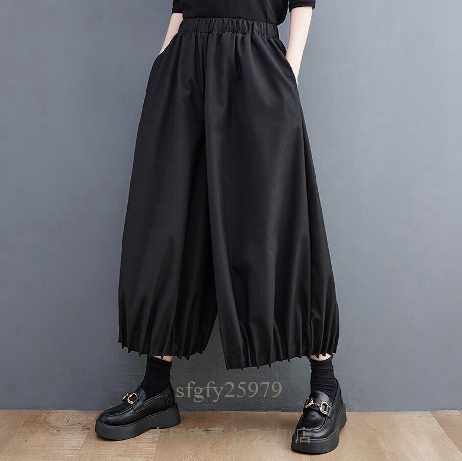 B1023☆新品秋冬 上質 カジュアル 無地 コットン ワイドパンツ 大きいサイズ ウエストゴム ガウチョパンツ サルエルパンツ ★ 黒