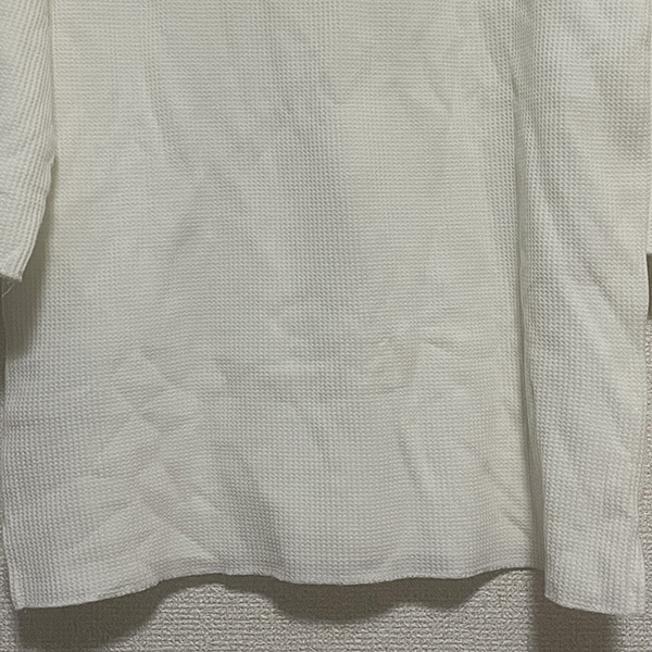 ジャーナルスタンダードレリュームのサーマルシャツです。カラーはオフホワイトです。素材はコットン50% ポリエステル50%、表記SIZEはM 実寸 着丈64cm 肩幅48cm 身幅50cm 袖丈36cm(素人採寸ですのでご了承ください)。送料無料(メール便発送)にいたしますのでどうぞよろしくおねがいします。