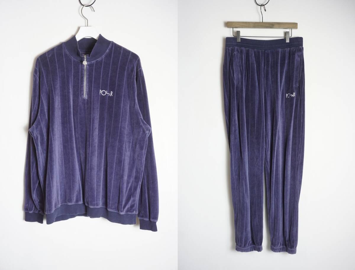 polar ポーラー zip ジップ付き ベロア トラック ジャケット パンツ ジャージ セットアップ 上下セット 紫 です。