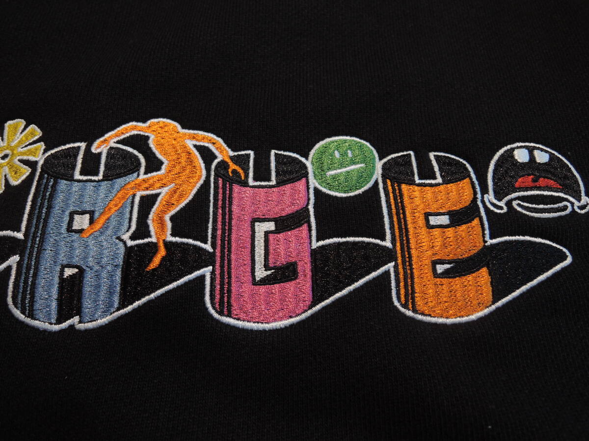 XLARGEロゴをモチーフにしたカラフルなグラフィックの刺しゅうが印象的です。