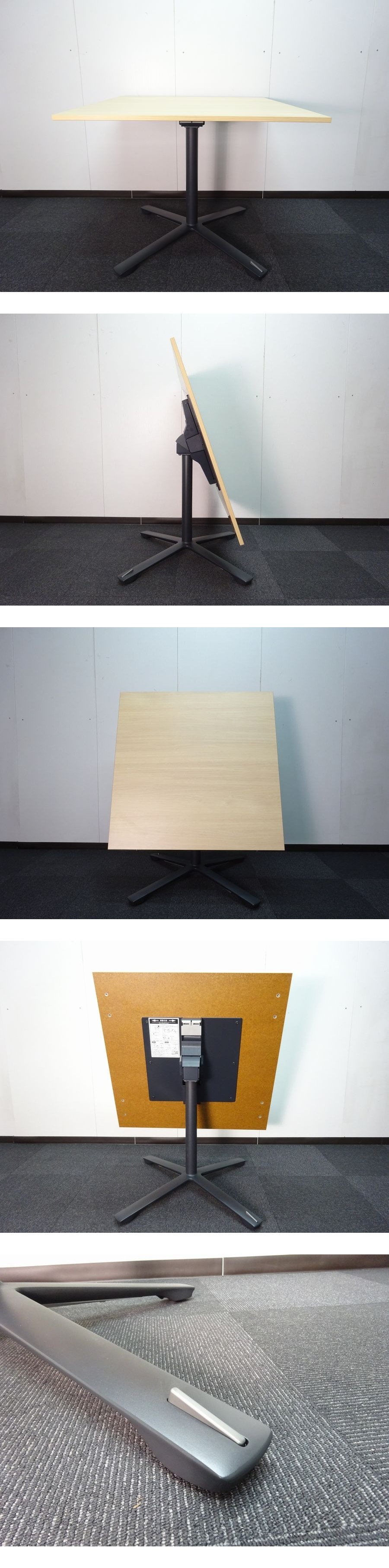 ・メーカー:イトーキ ・型番:DDJF-099HNTC-TX ・サイズ:W900×D900×H720 単位(mm) ・天板:ホワイトオーク ・脚カラー:サテンブラック ・価格:¥121,330 オフィスファニチャーブランド イトーキのホバーテーブルです。様々な空間にフィットするスタンダードテーブルシリーズ。シンプルなデザインが魅力のミーティングテーブルです。片側についているスイッチを押すことで、向かい側のキャスターも同時に固定・解除ができる対向連動ロック式キャスターです。天板を折りたたみ、コンパクトに並べて収納できます。 ■仕様 ・天板:抗菌メラミン化粧板(ポリジン加工) ・エッジ:ABS樹脂 ・脚:アルミダイキャスト+スチール塗装仕上 ・キャスター:ナイロン双輪前後連動ストッパー付 ■状態 ・こちらの商品は2024年製未使用品です。運搬時の若干のスレはございますが、目立つキズ、汚れなど無く綺麗な状態です。現在複数台ございます。この機会にいかがでしょうか! (※未使用とは…商品を開封し、設置等しましたが一度も使用せず保管していた商品となります。) ・分解しての発送を予定しております。天板、フレームと2個口での発送となります。到着後お客様にて組立お願い致します。 | ||||