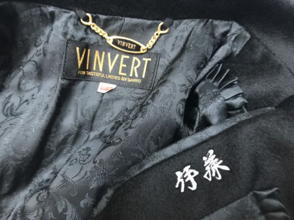バンベール VINVERT オールド レトロ モード クラシック 裏地ペイズリー総柄 カシミヤ ステンカラー コート レディース 日本製 5AP 黒 です。