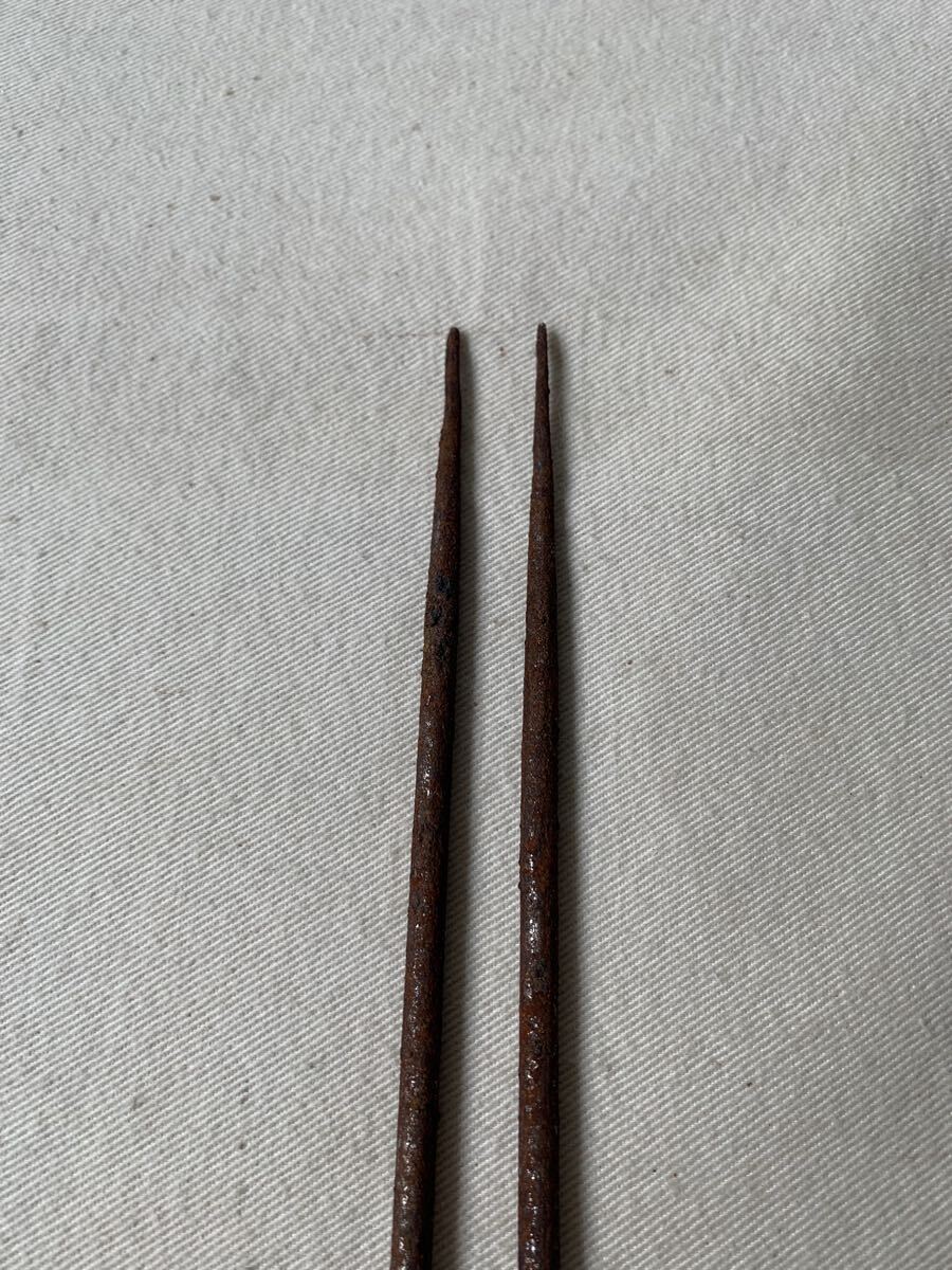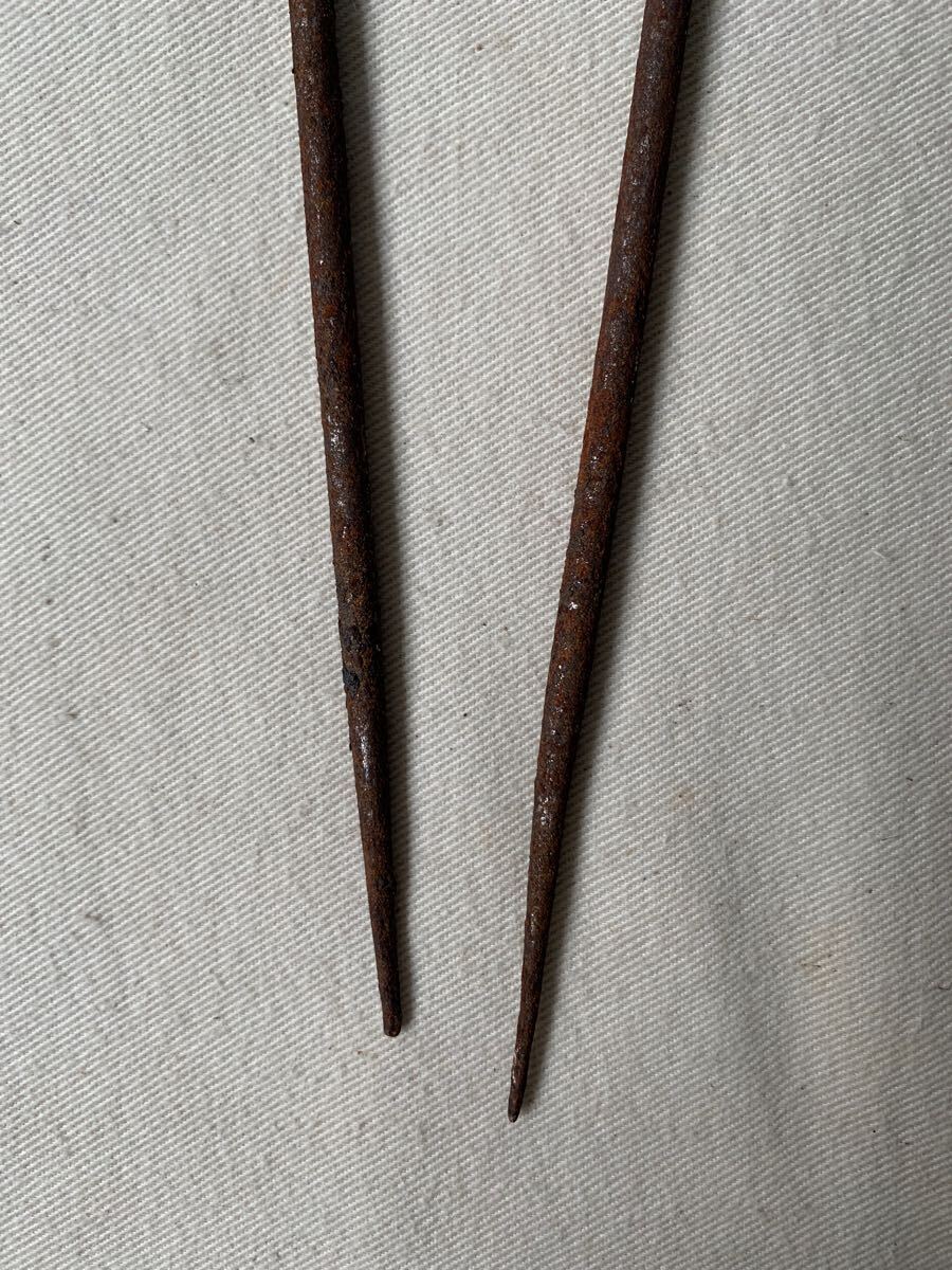 旧家蔵出し品 経年の雰囲気が素敵な古い鉄製火箸です。