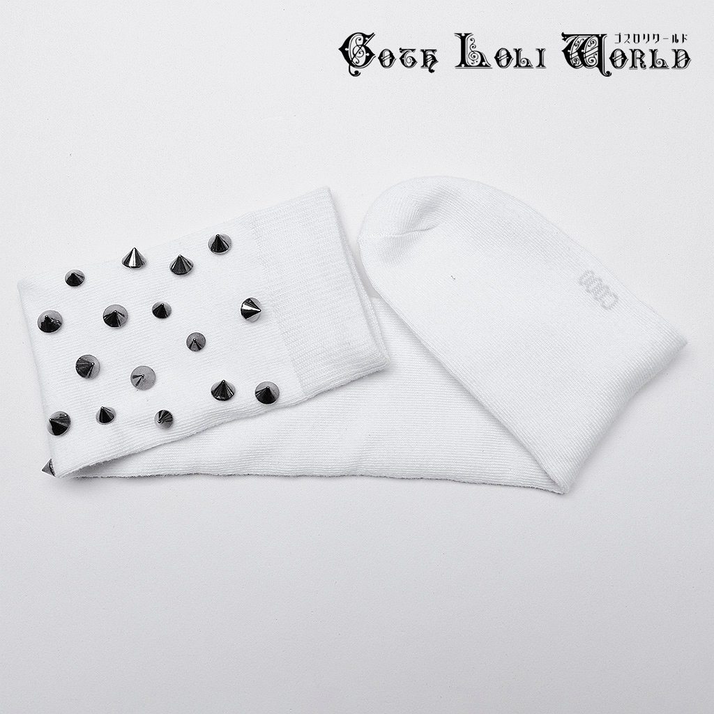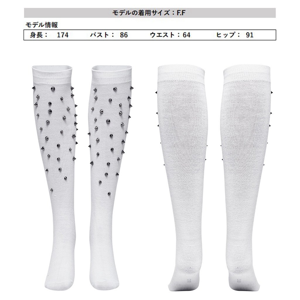 WS-688JTF-WH-FREE ホワイト スパイク コットン ハイソックス 白色 ゴスロリワールド ゴシック パンク ロック ロリィタ ビジュアル系 V系
