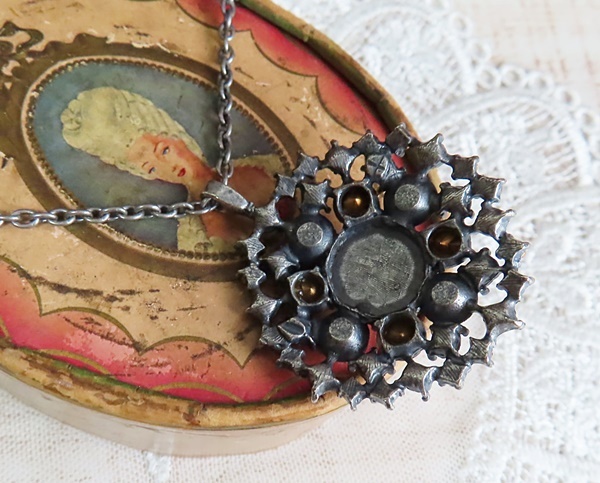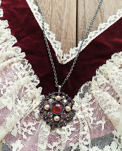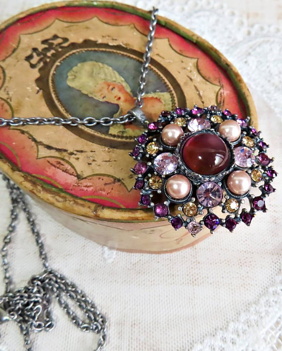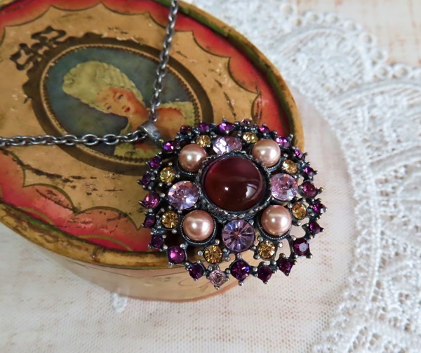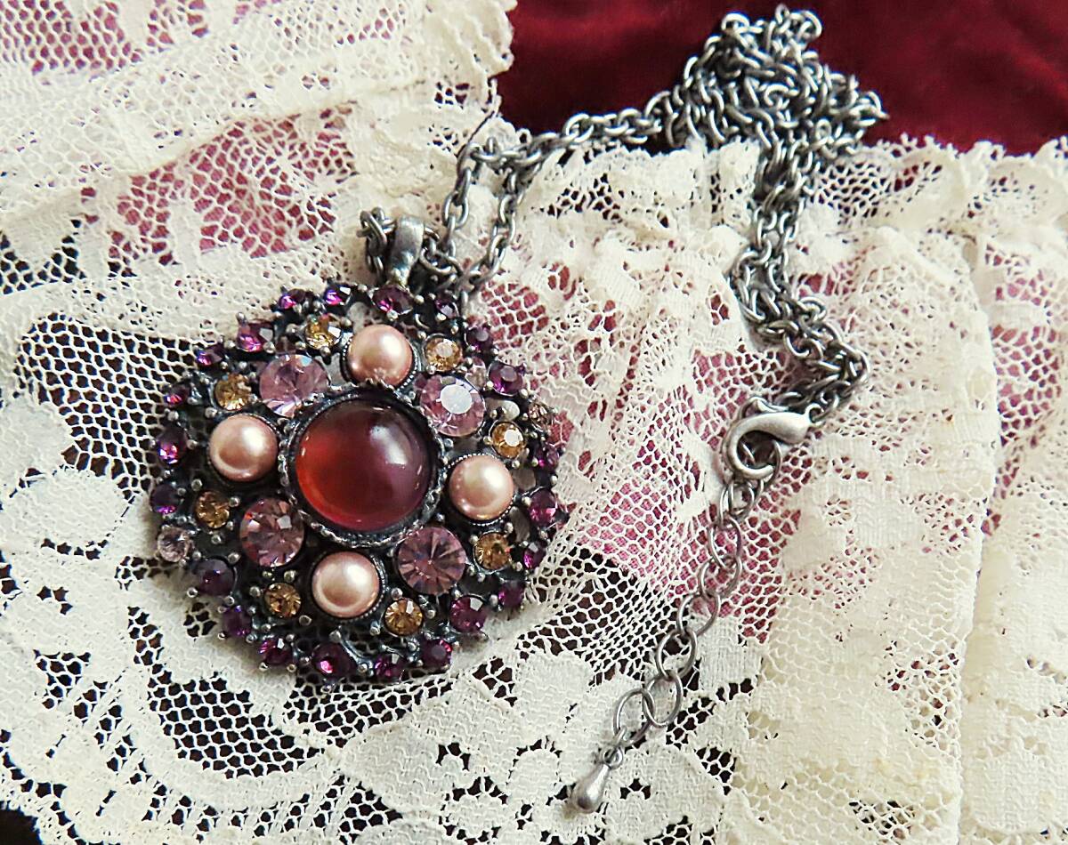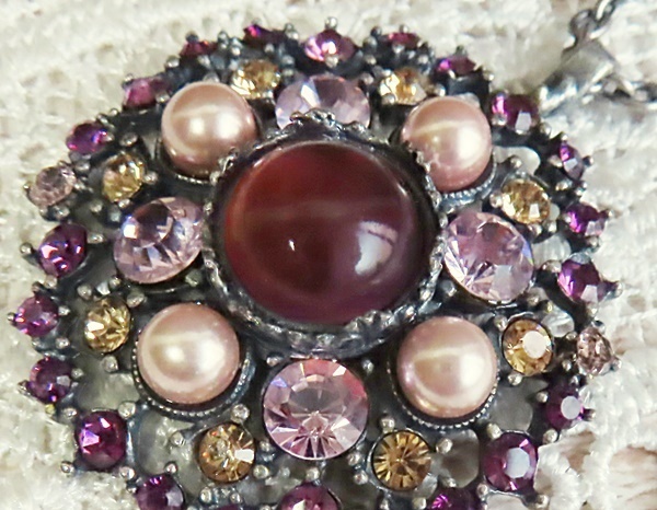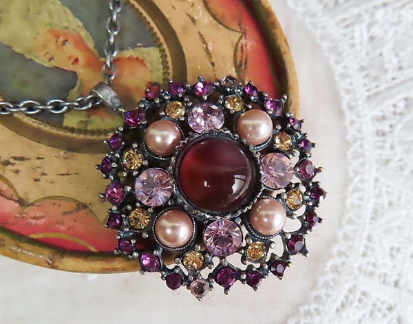 アンティーク調〔 ネックレス ペンダント 〕パープル ラインストーン イミテーションパール