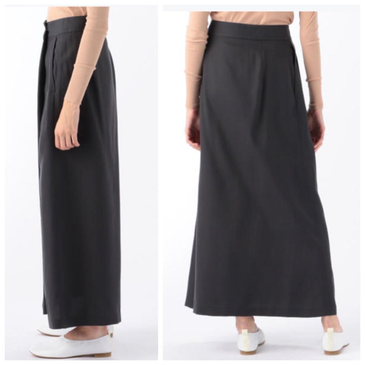 美しいドレープ性が魅力のリヨセルレーヨン素材を使用し、モダンな表情に仕上げたスカート。