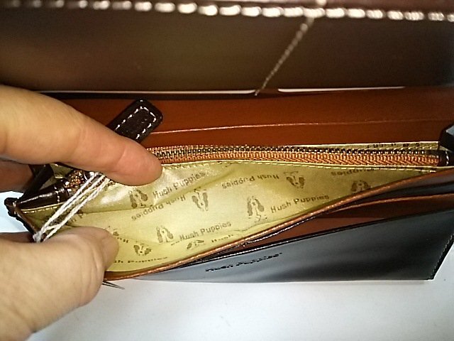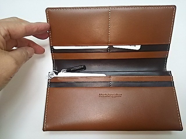 新品 未使用のハッシュパピー 長財布です。かぶせタイプです。若干ダメージがありますので格安で出品します。4枚目以降の画像すサンプルになります。