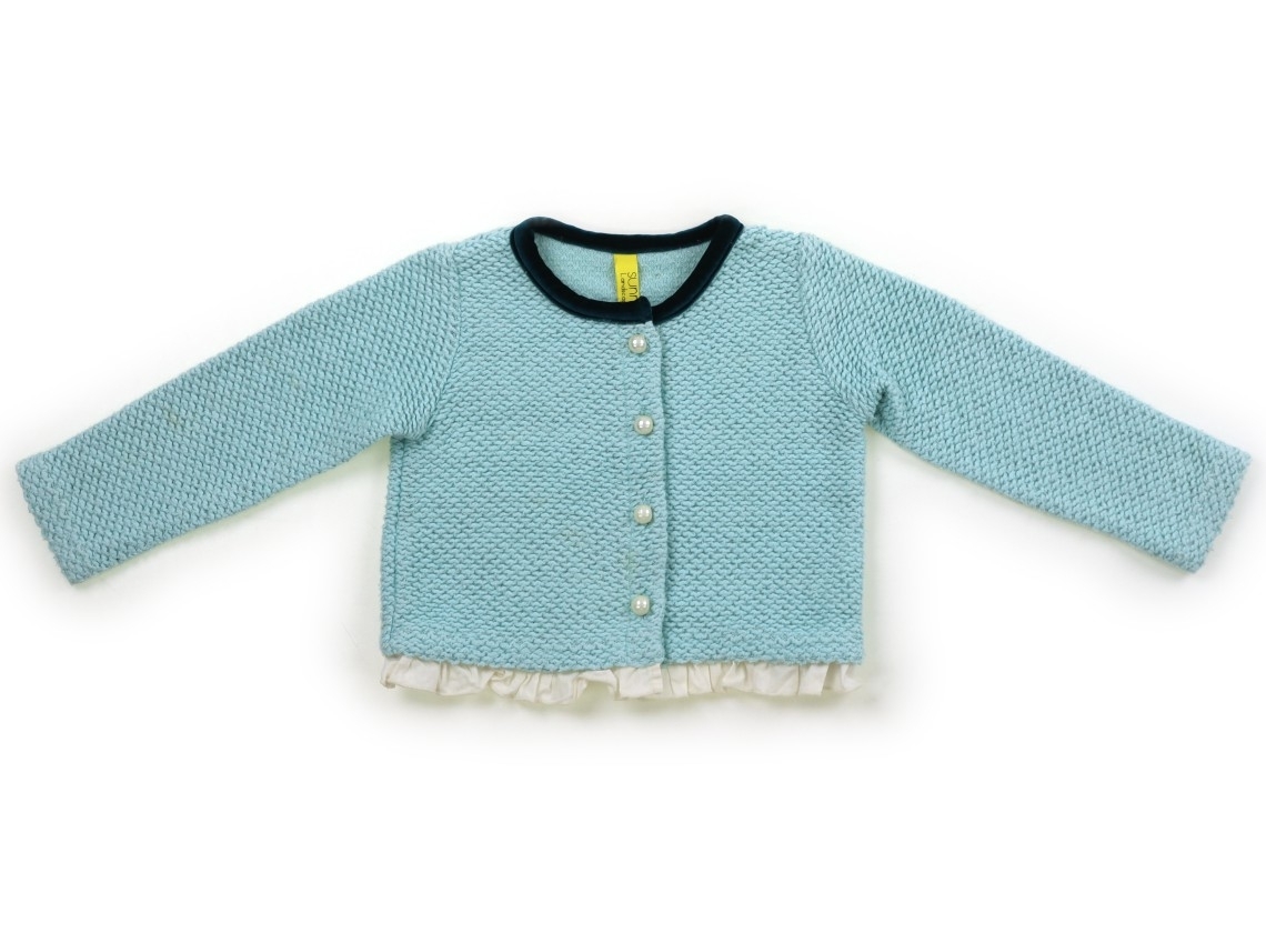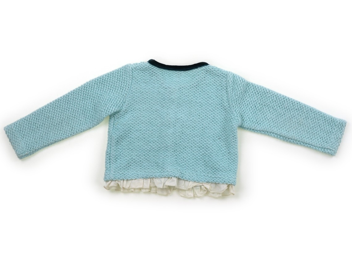 ニット生地。ボタン開き。全体に毛玉感、型崩れがあります。ボタンラインに薄く茶色いシミがあります。外遊び用としていかがでしょうか?