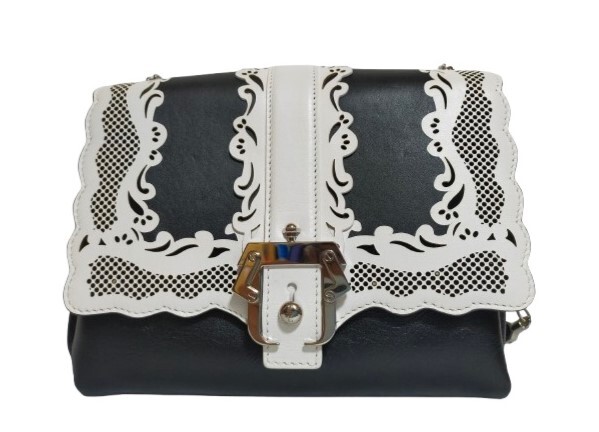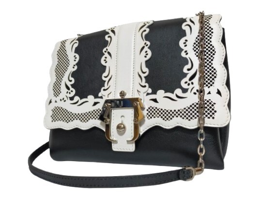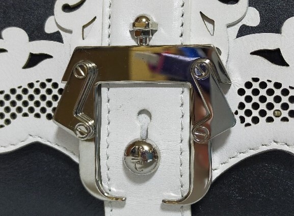 美品☆PAULA CADEMARTORI パウラカデマルトーリ バイカラー ダブルチェーン ショルダー バッグ 3室 ITALY製 |