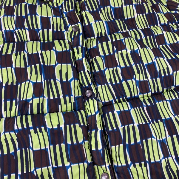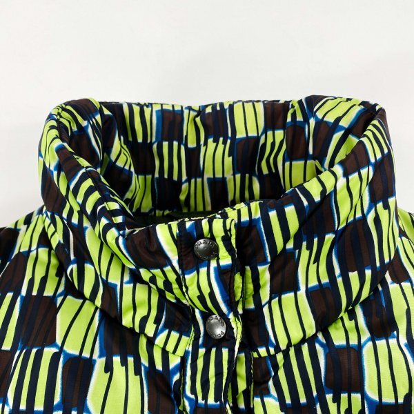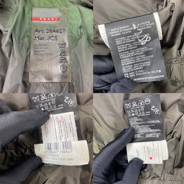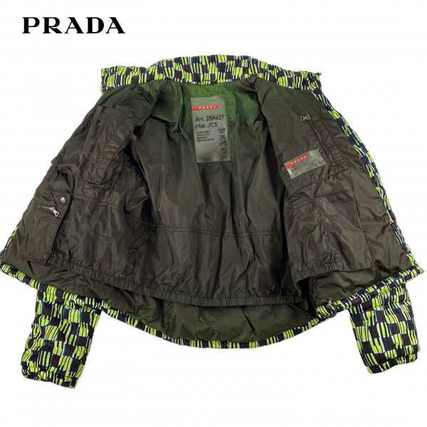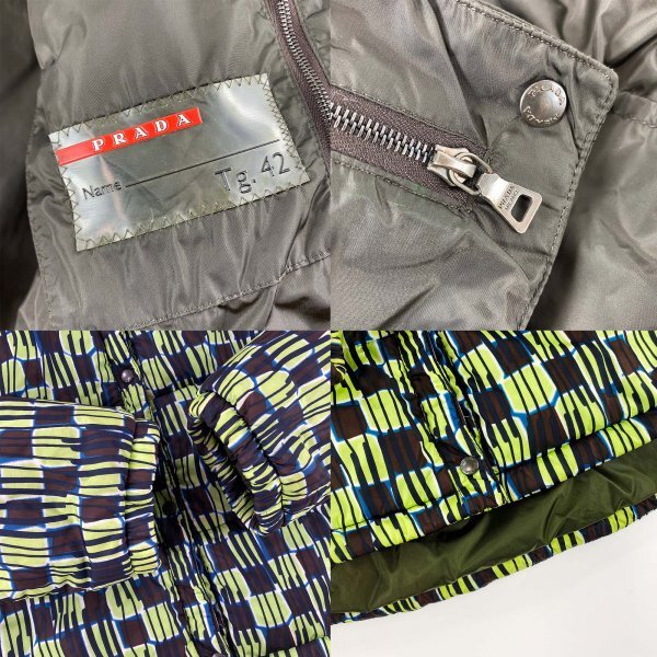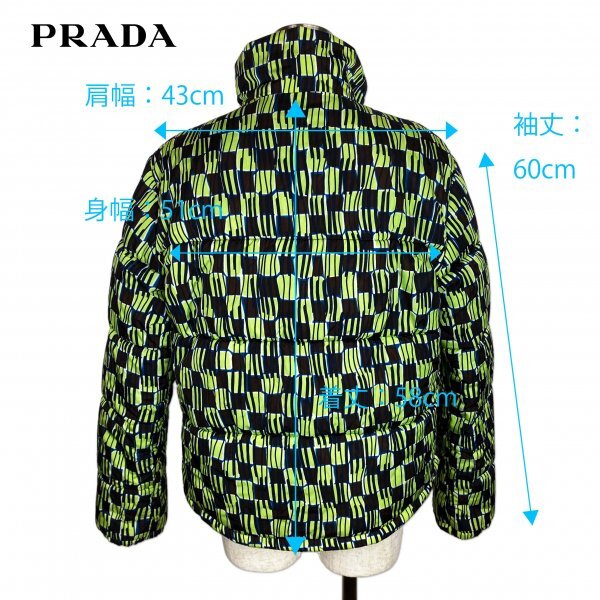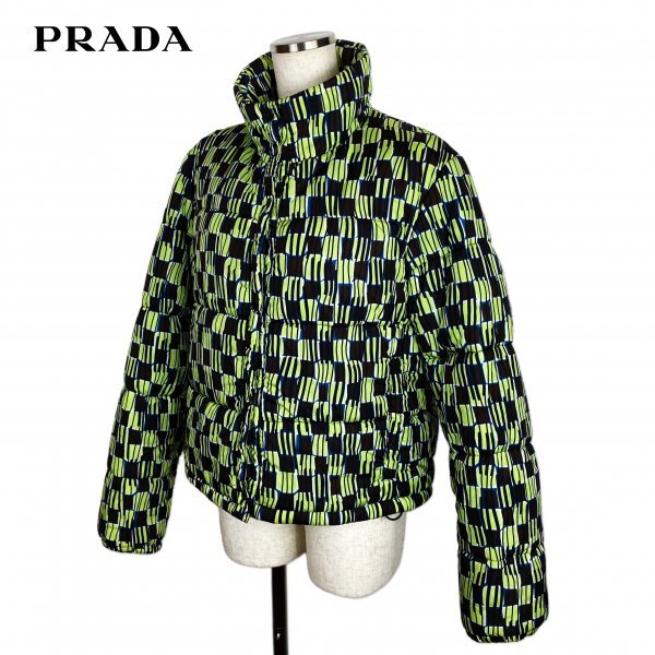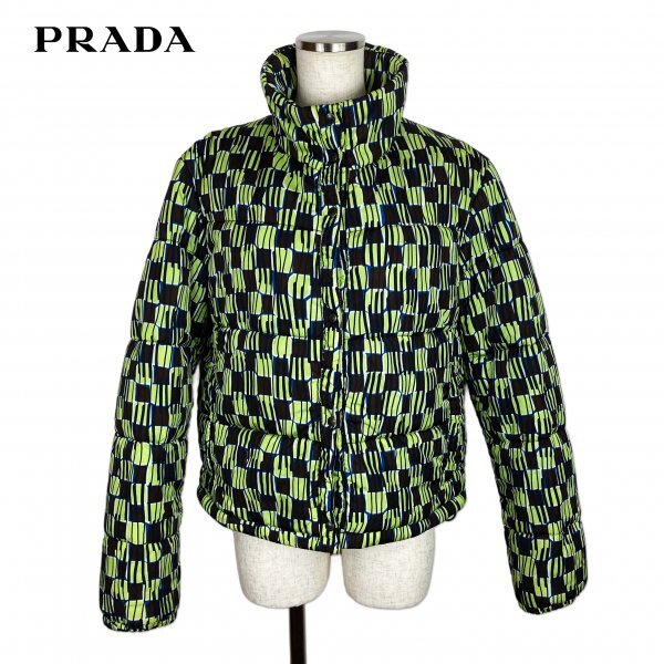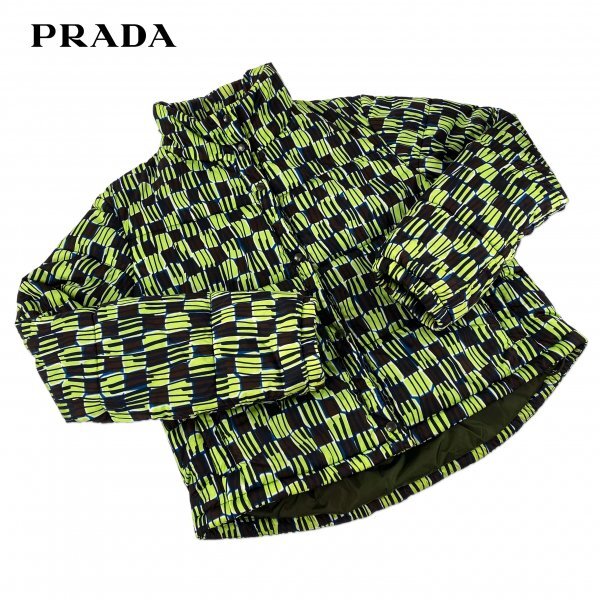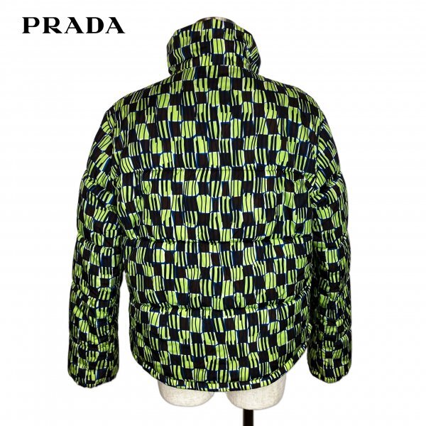 ★激レア/美品★ PRADA プラダ パファー ダウンジャケット チェック ストライプ 総柄 グリーン 42 M ルーマニア製 クリーニング済み