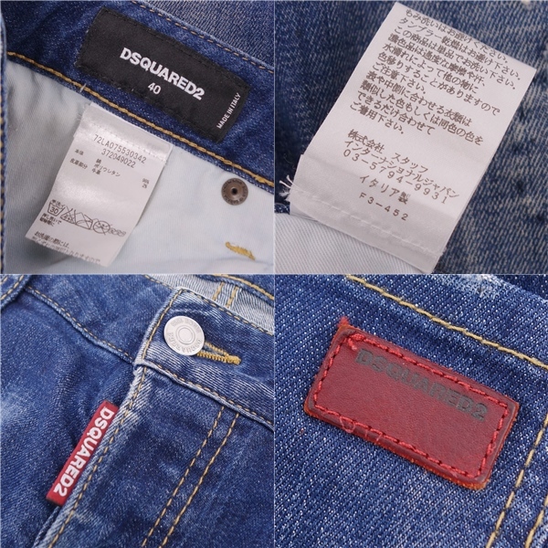 美品 ディースクエアード DSQUARED2 パンツ デニムパンツ ジーンズ ダメージ加工 ボトムス レディース 40 ブルー |