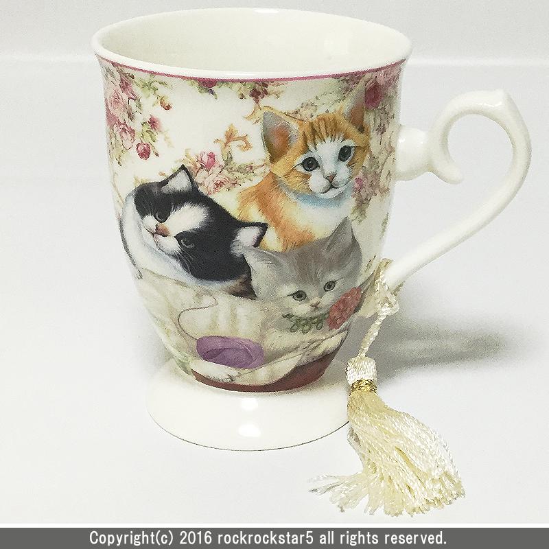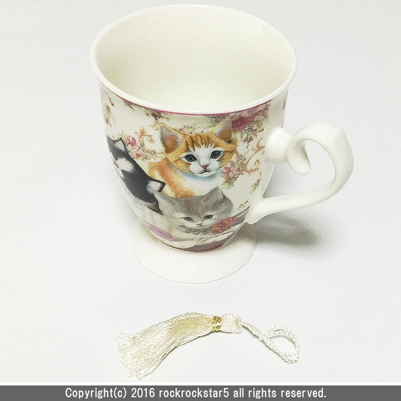 マグカップ ストラップ付き 化粧箱 おしゃれ 猫 薔薇バラ 新品②