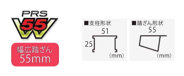 | ・全サイズワンタッチ式開き止め金具を採用しています。 ・脚端具の強化を実現(中敷プレートを追加) ・ワイドステップ55mm幅広踏ざん採用。 ・360サイズでも収納や設置が簡単に行えます。 |