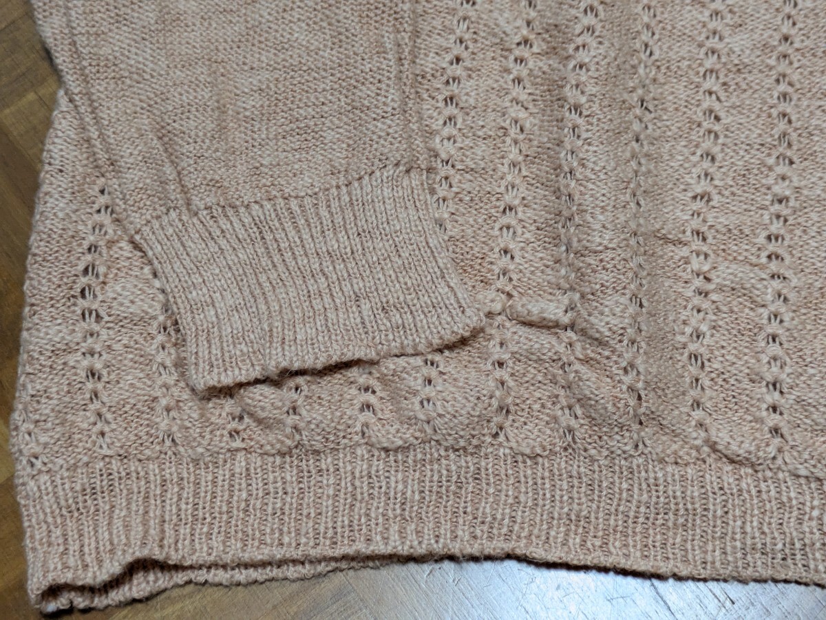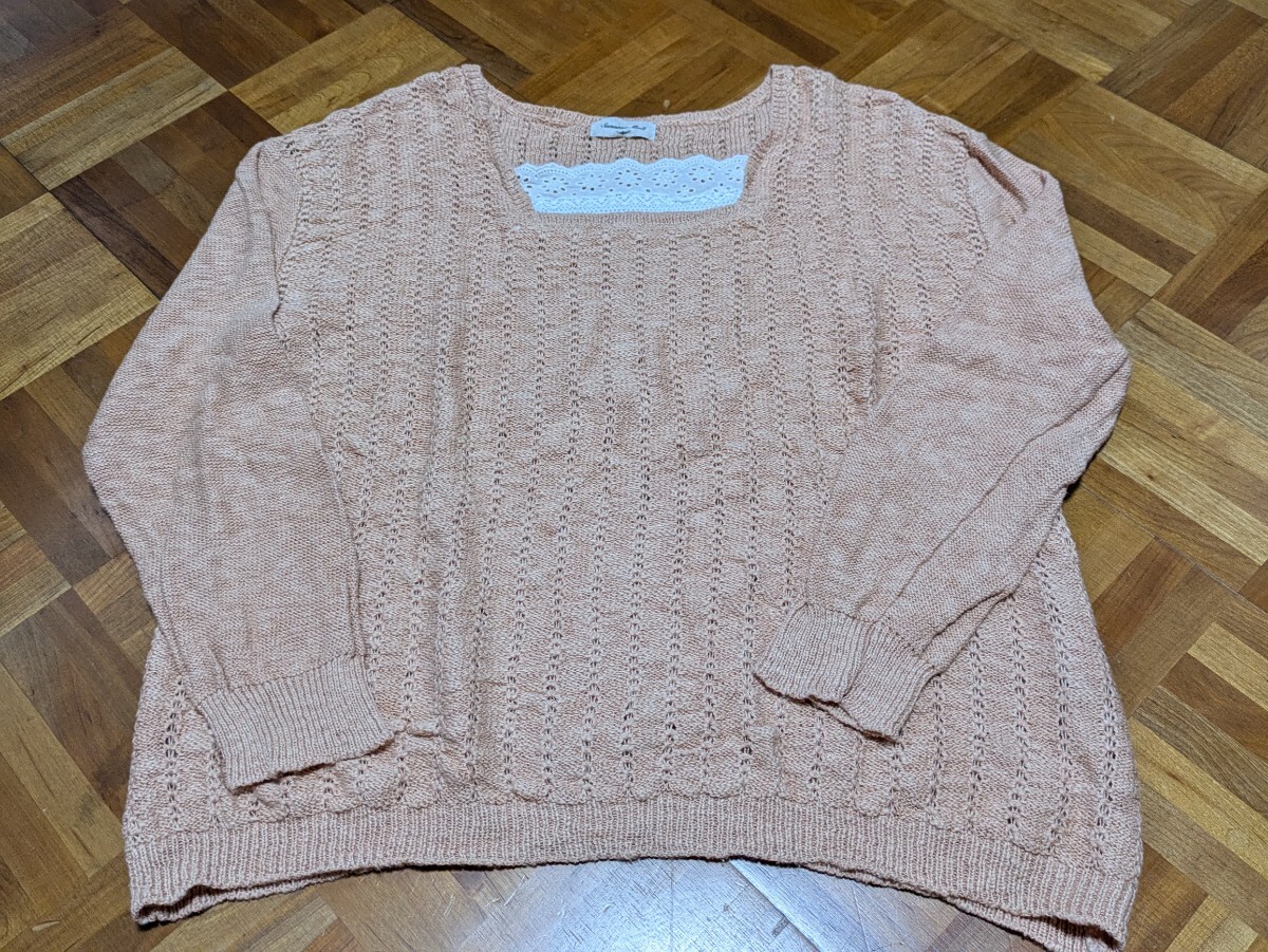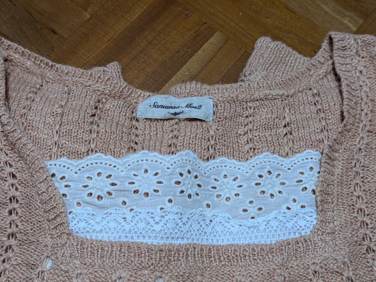 数年前に購入、そのまま着用せずに自宅保管ですがたたんで閉まってあったのでたたみじわがあります。綿62% 麻38% レースは綿100%
