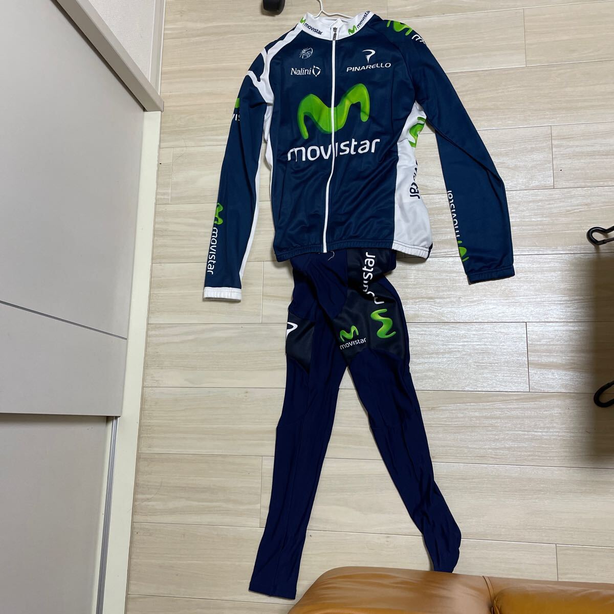 美品 プロサイクルチーム movistar モビスター サイクル 長袖ジャージ ロングビブパンツ の出品です。