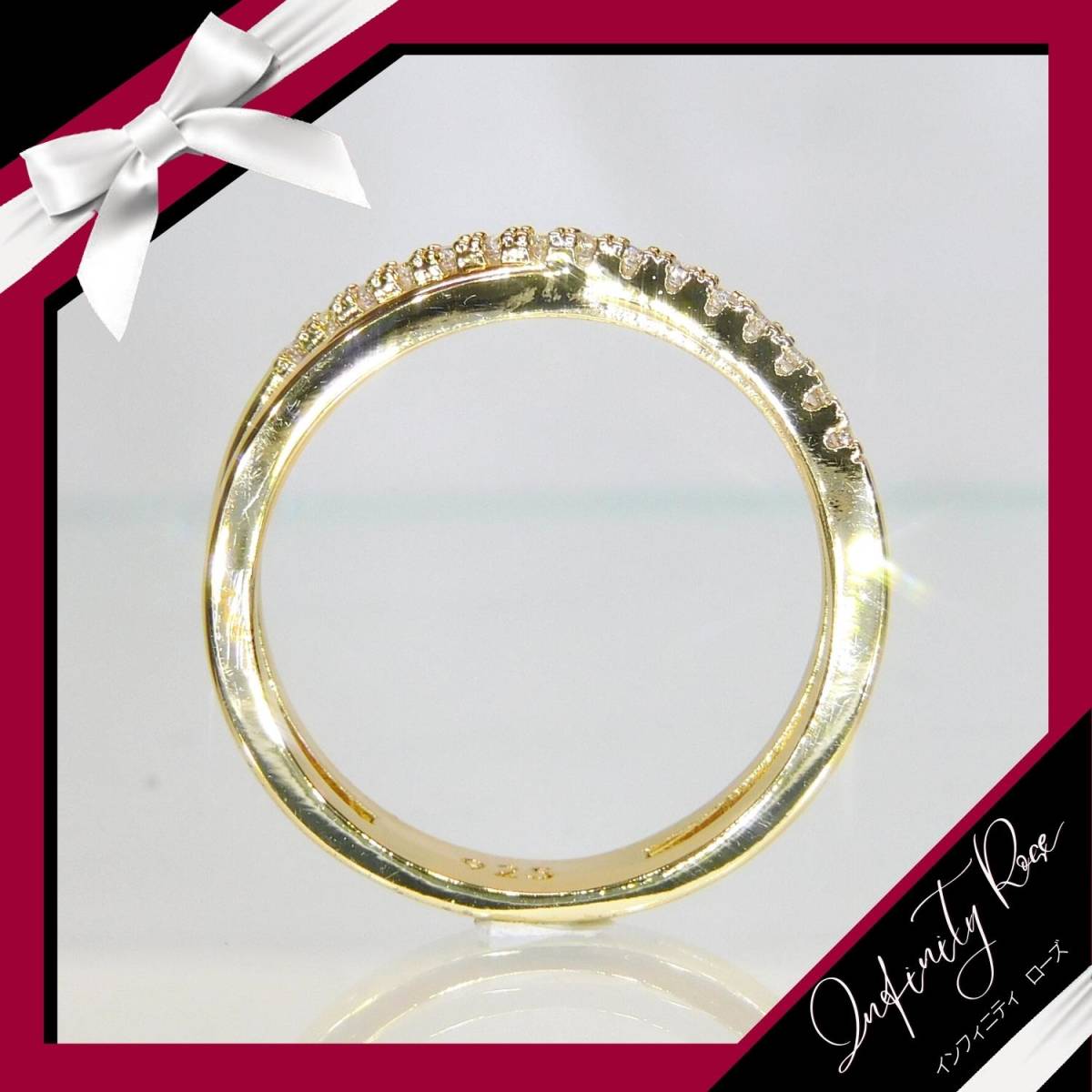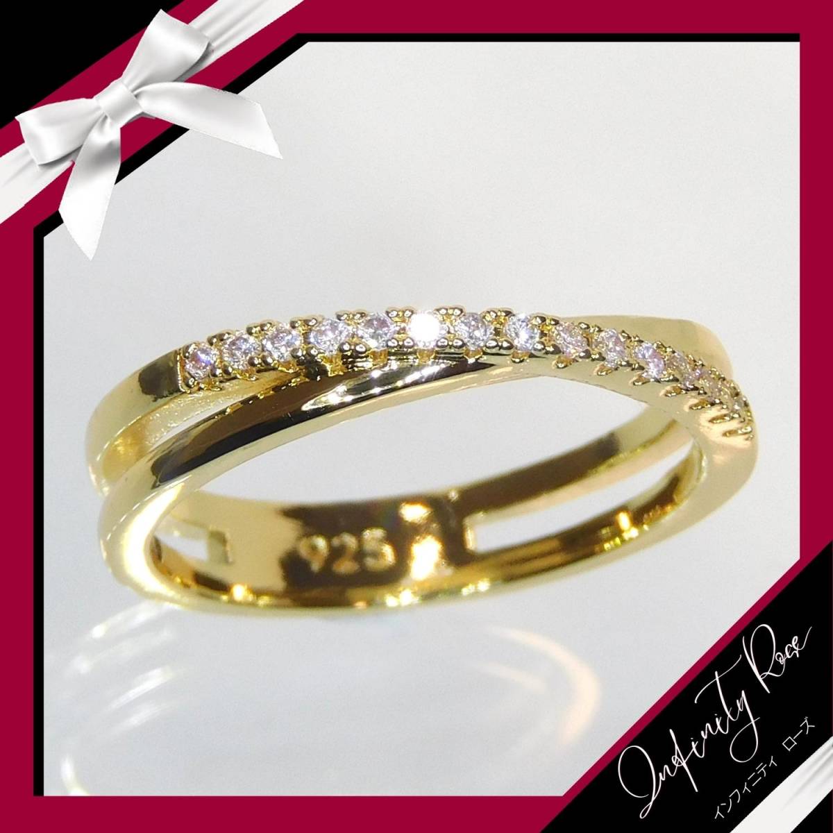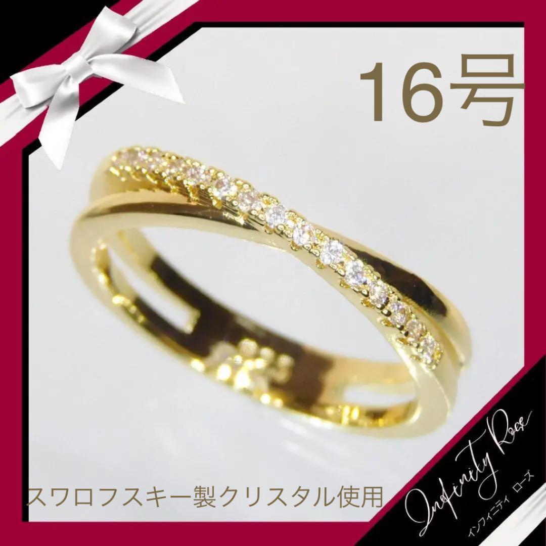 (1110)16号 ゴールド豪華エンゲージリングクロス高級デザインリング 指輪 スワロフスキー製クリスタル使用