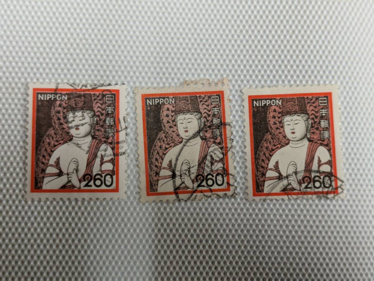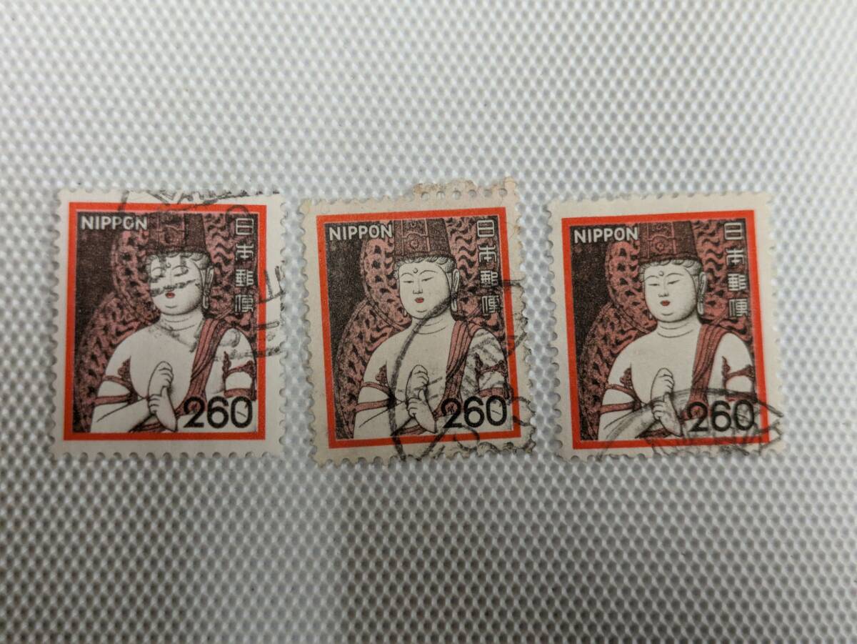 普通切手 1966-1989 新動植物国宝図案切手 Ⅴ.1980年シリーズ (封書60円時期) 一字金輪像 (中尊寺) 260円切手 単片 使用済 3枚