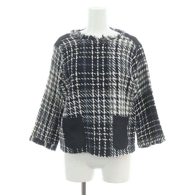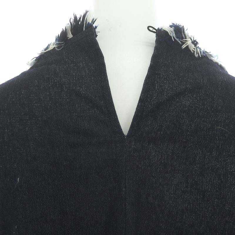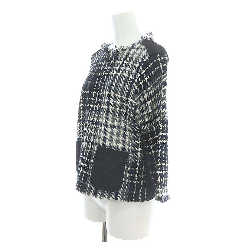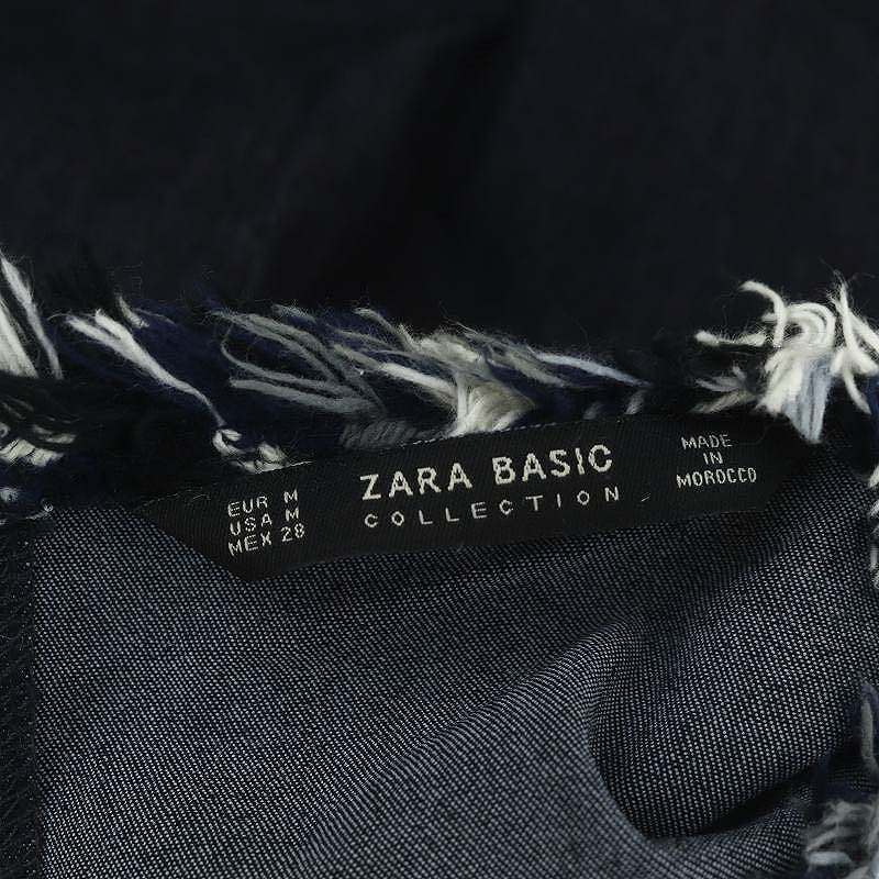ザラ ベーシック ZARA BASIC ツイードデニムプルオーバー カットソー 七分袖 M 紺 ネイビー /AT ■OS レディース