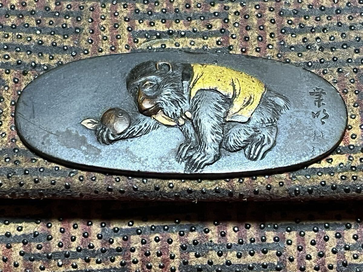 猿の目貫ですが、繊細な細工により毛並みの