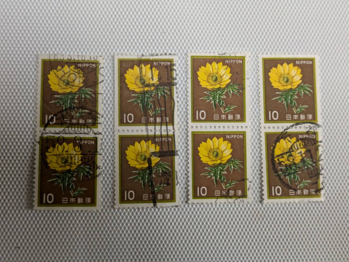 普通切手 1966-1989 新動植物国宝図案切手 Ⅴ.1980年シリーズ (封書60円時期) フクジュソウ 10円切手 縦ペア 使用済 4組