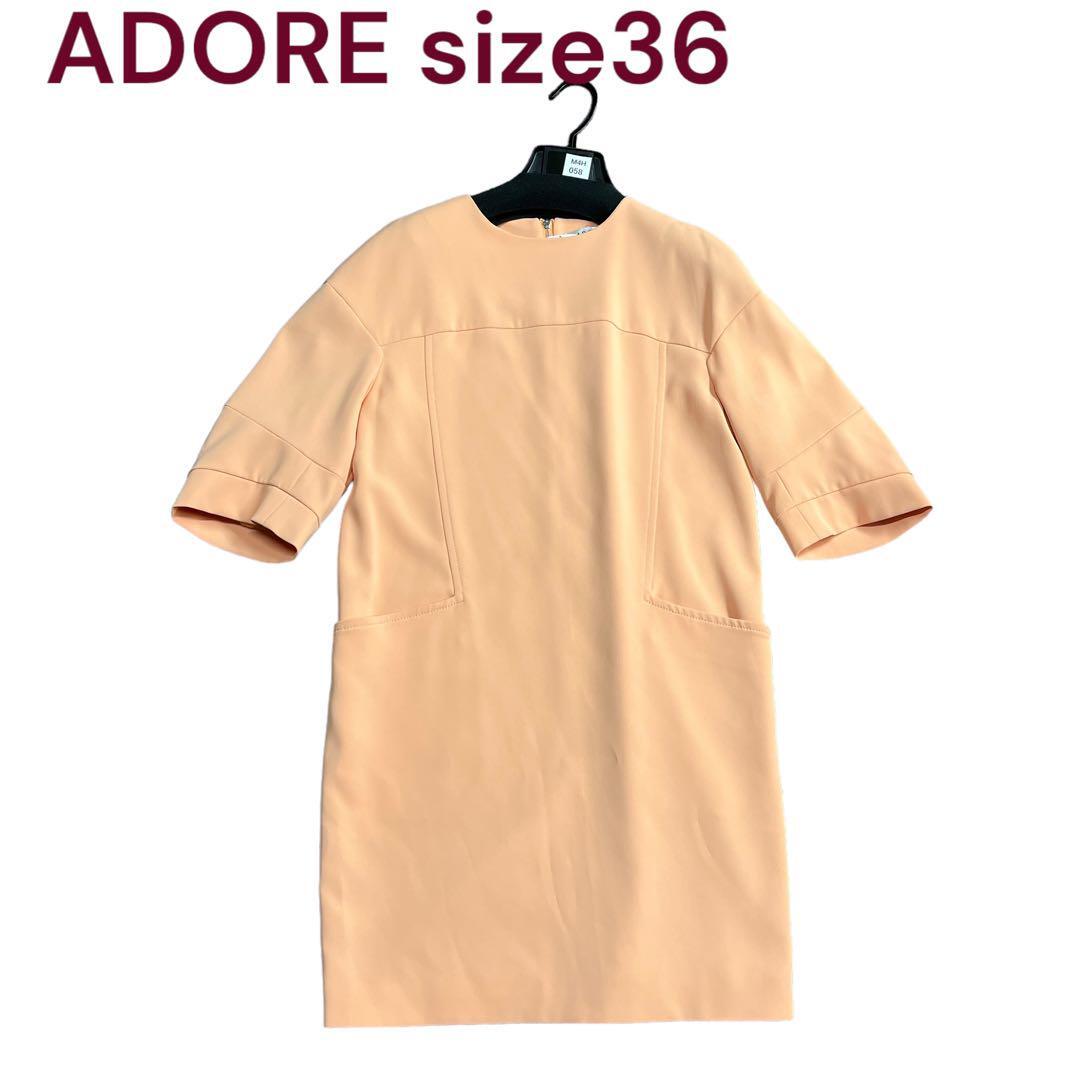 美品 アドーア パステルオレンジ系 綺麗色 ワンピース 36 M4H058 ADORE S 7号