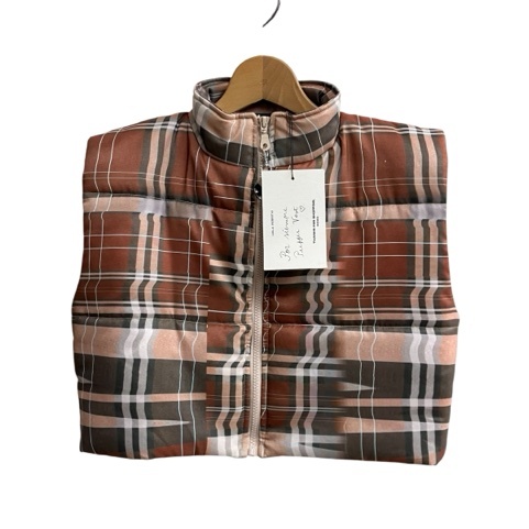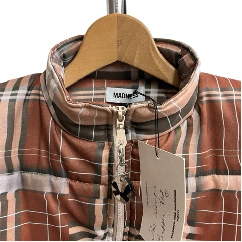 未使用品 MADNESS マッドネス タータンチェック ダウンベスト S 茶×カーキ タグ付き レディース