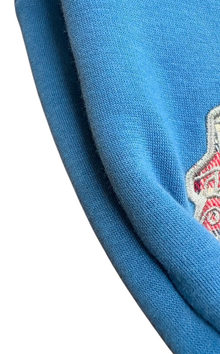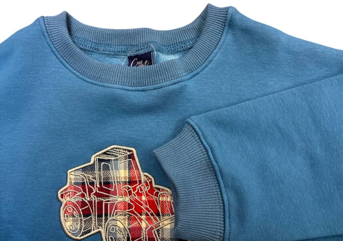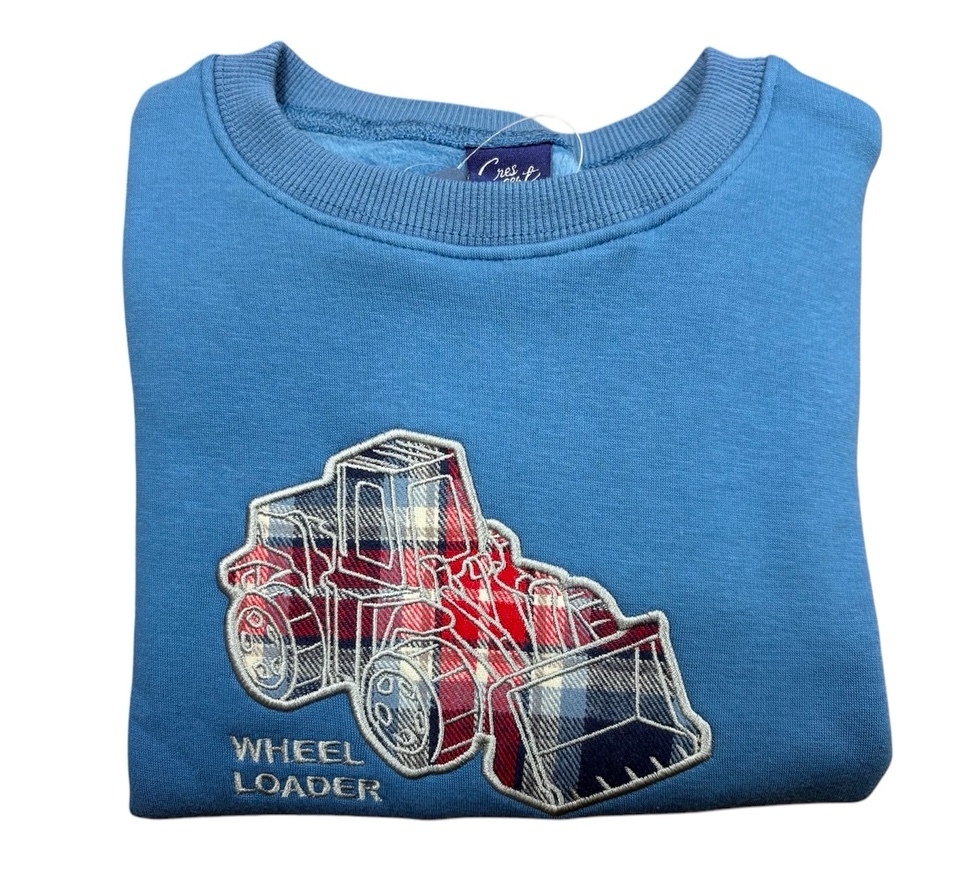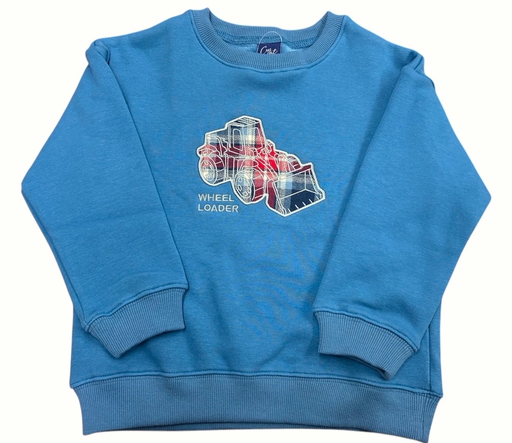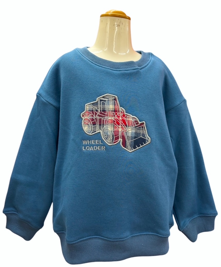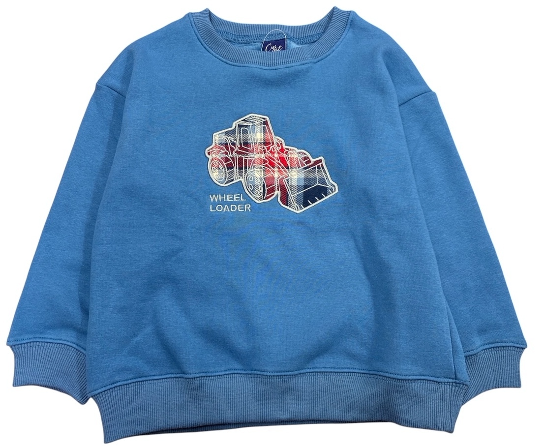 即決 新品タグ付 Crescent クレセント★ホイールローダー柄 アップリケ 裏起毛 あったかトレーナー/bl★子供 110cm 5-6才目安 ¥1980