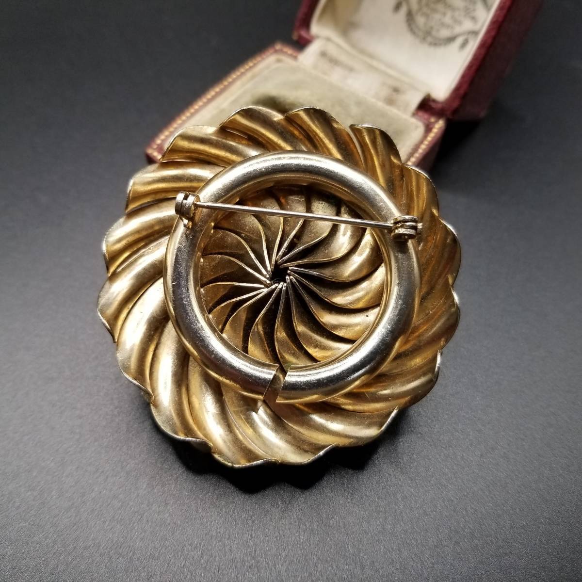 モダンジュエリー 渦巻 ファン カーブ ヴィンテージ ブローチ アールデコ ゴールドトーン レトロ 大ぶり ステートメントジュエリー YAP②9