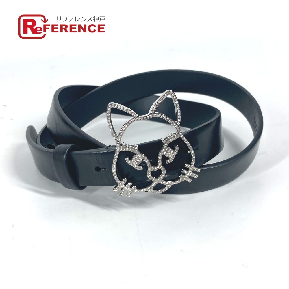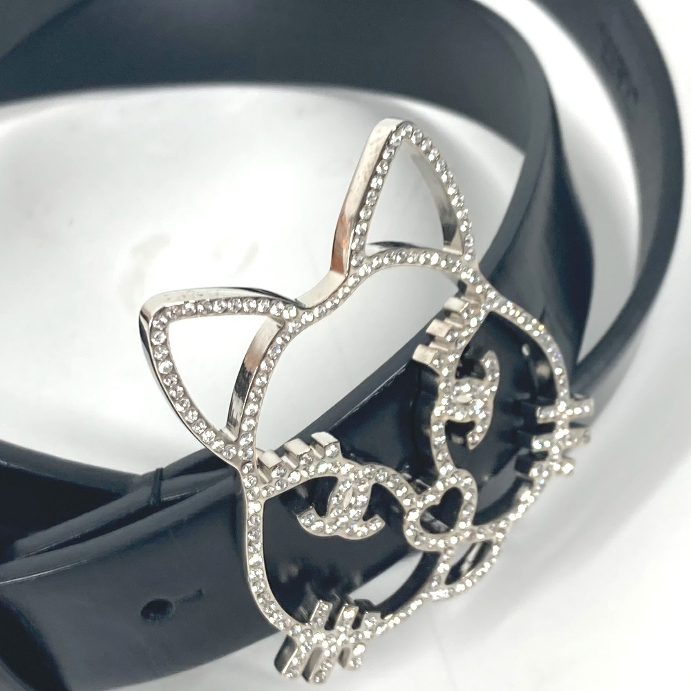 CHANEL シャネル キャット 猫 ベルト アクセサリー ラインストーン 細ベルト 16K ベルト ブラック レディース【中古】