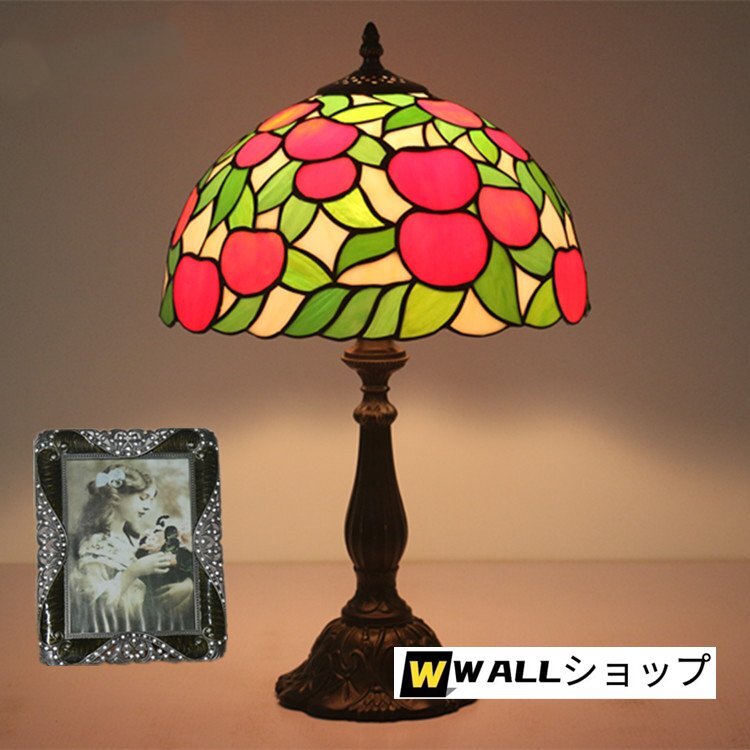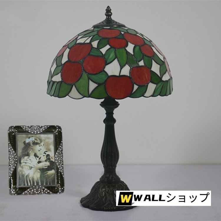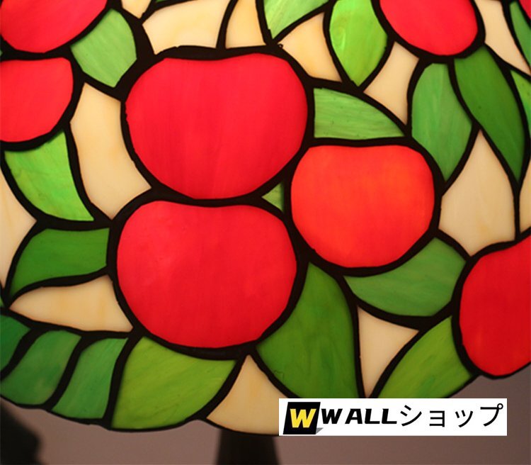 ステンドランプ りんご図案 ステンドグラス 室内装飾 照明 レトロな雰囲気 ティファニー技法 テーブルスタンド