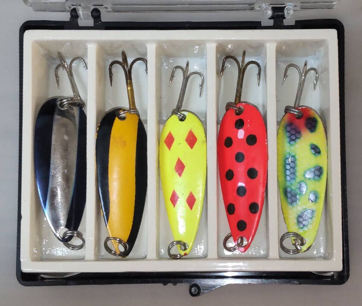 ■スプーン ルアー スピナー ベイト 約4.6-5.5g 約6.5cm(スプーン部分約4cm) 5個セット ケース付き 釣り ルアー