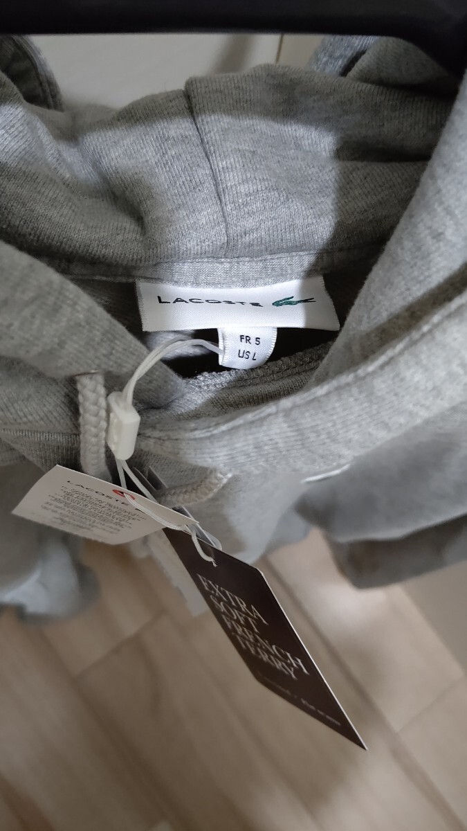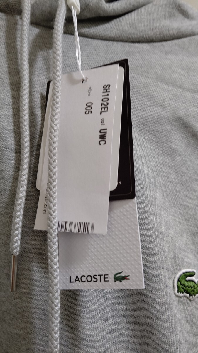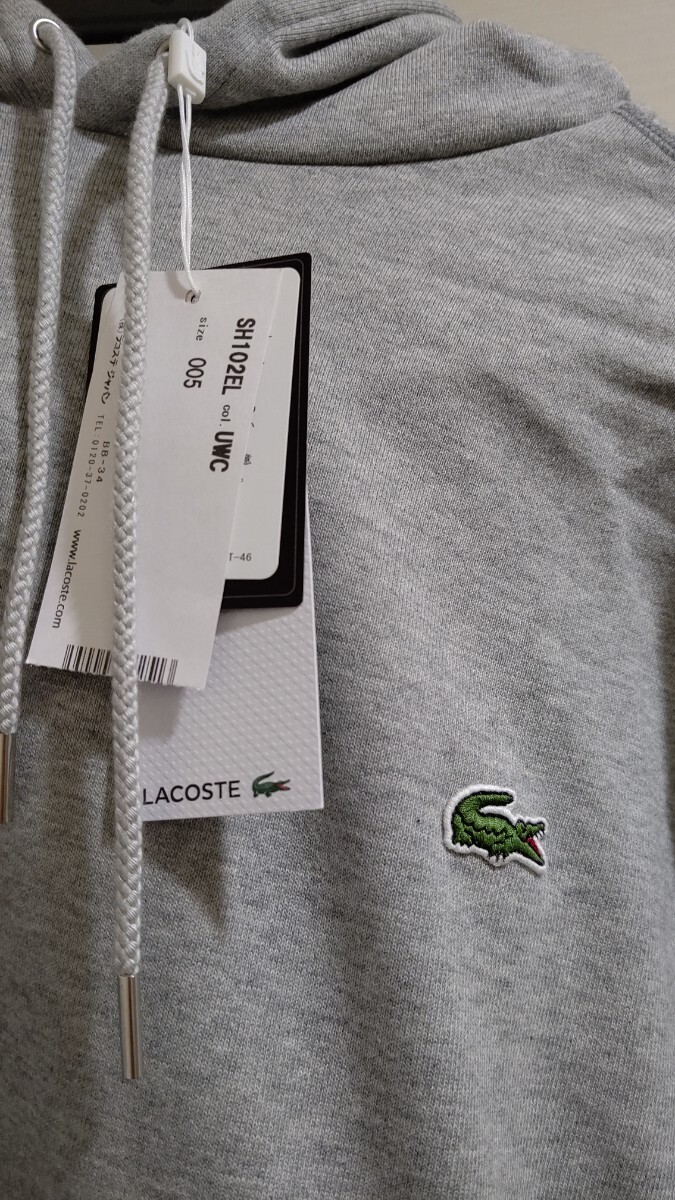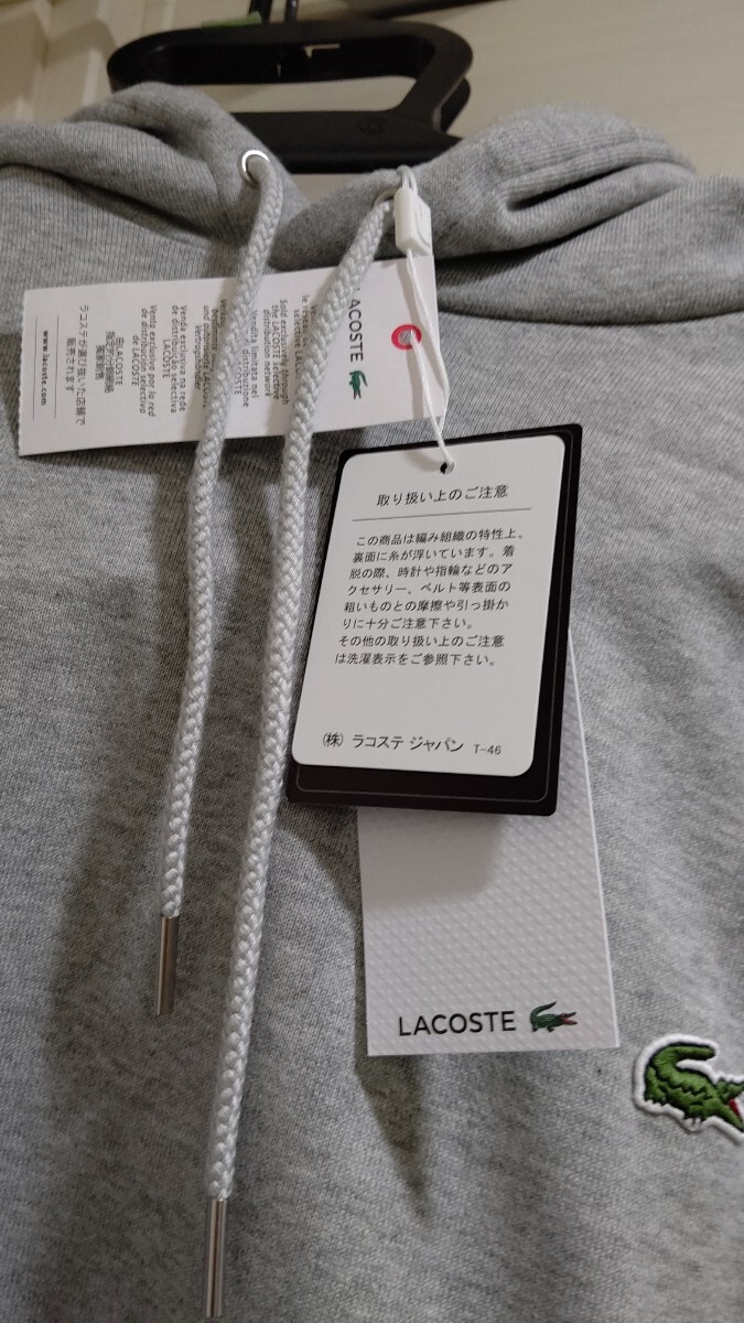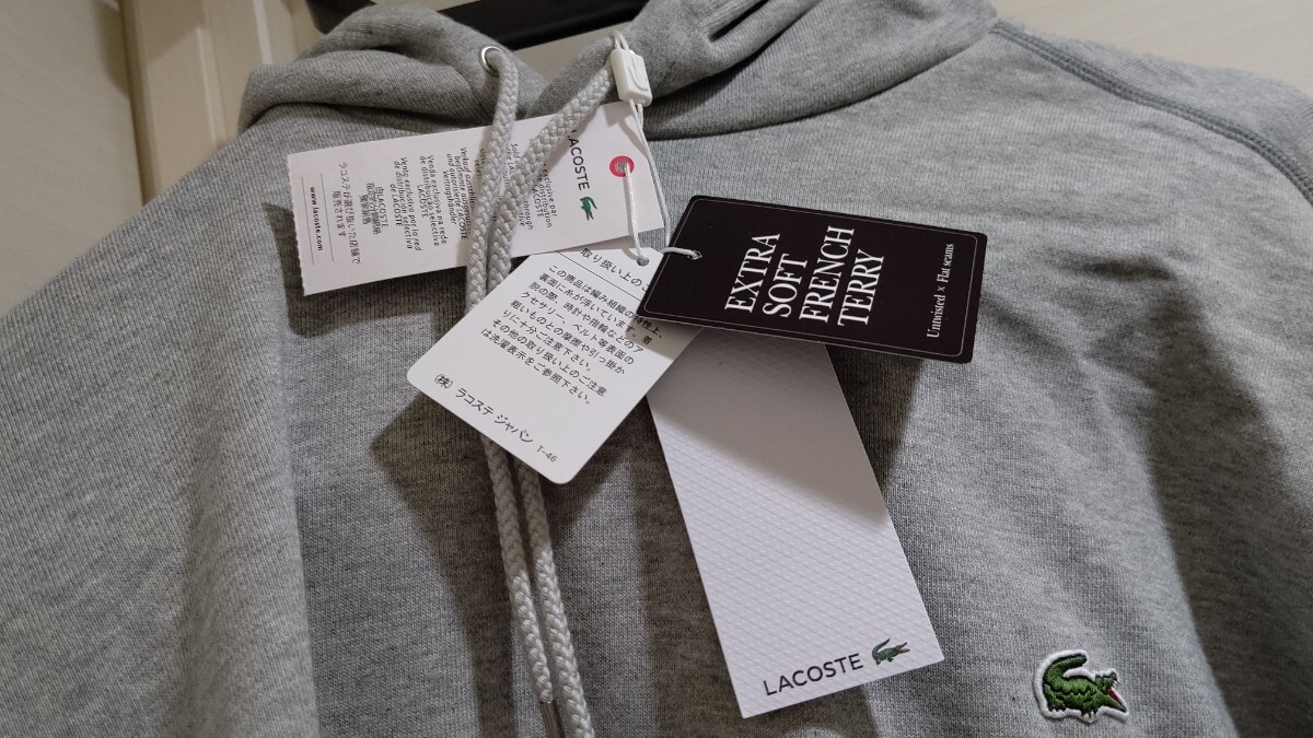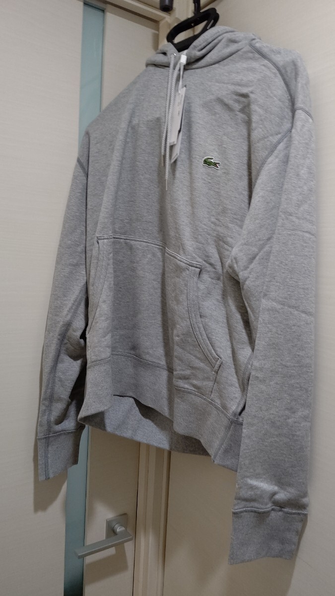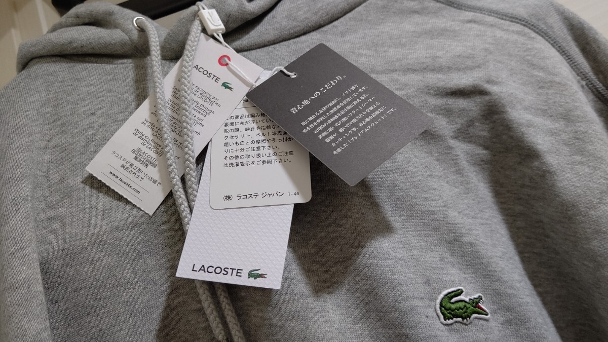 新品 タグ 未使用 LACOSTE ラコステ パーカー プレミアム コットン シンプル スウェット クルーネック SH100EL レギュラー フィットグレー フーディー フード 灰色 灰