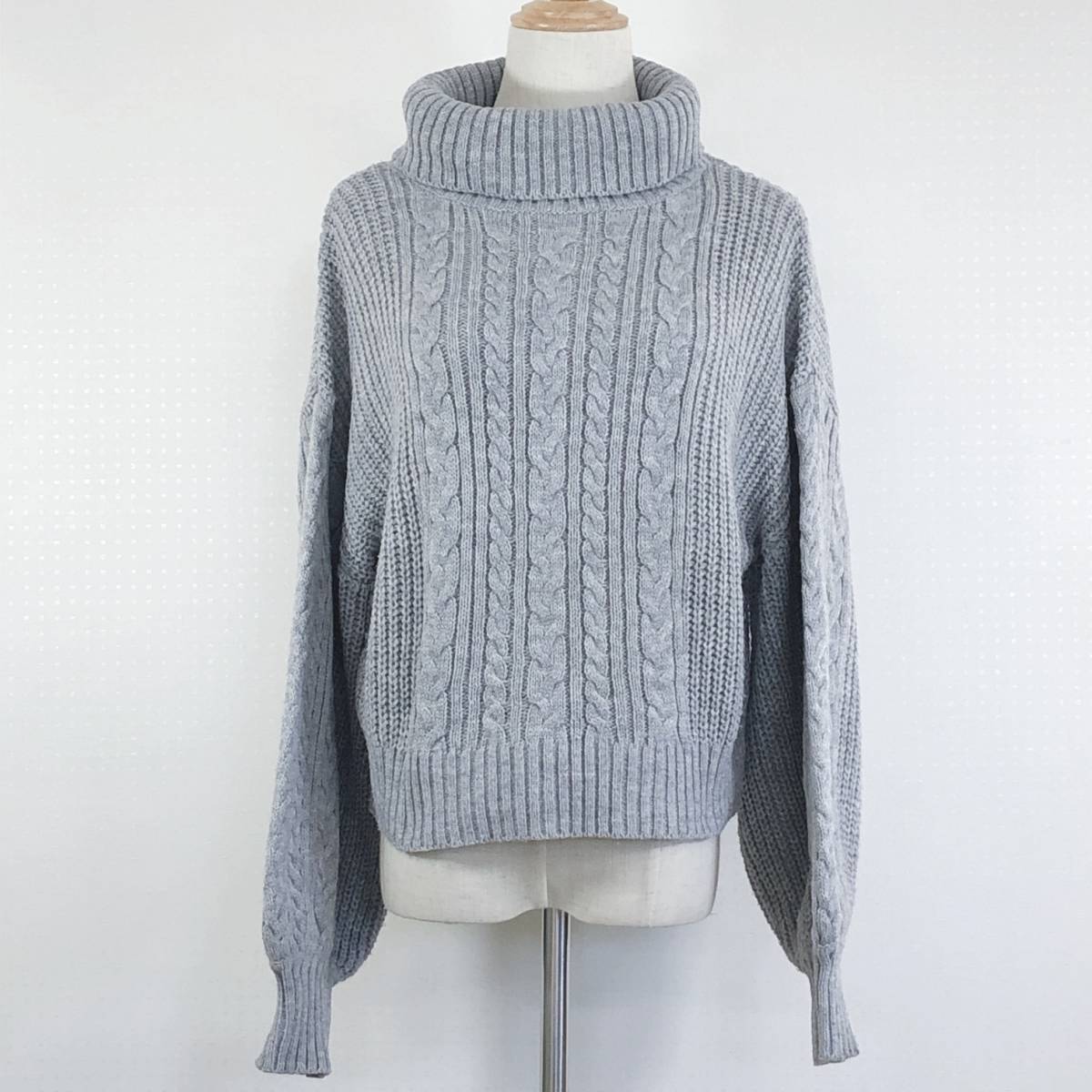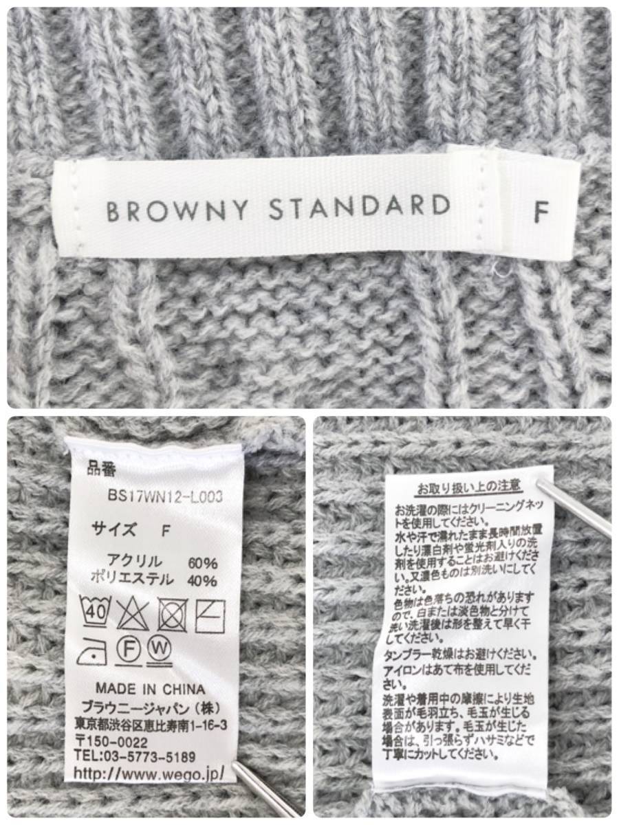 YAS1097 BROWNY STANDARD ブラウニースタンダード レディース トップス セーター ニット タートルネック Fサイズ グレー 灰 ケーブル編み