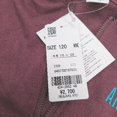 ◇ ⊂◎●未使用● ANAP KIDS アナップキッズ 綿混合 キッズ 長袖 ブルゾン サイズ120 ワイン 女の子 男の子 E