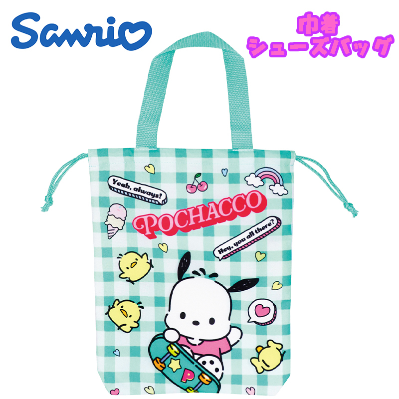 サンリオ ポチャッコ アクティブ 巾着シューズバッグ シューズケース 靴入れ 撥水 抗菌 グリーン 03