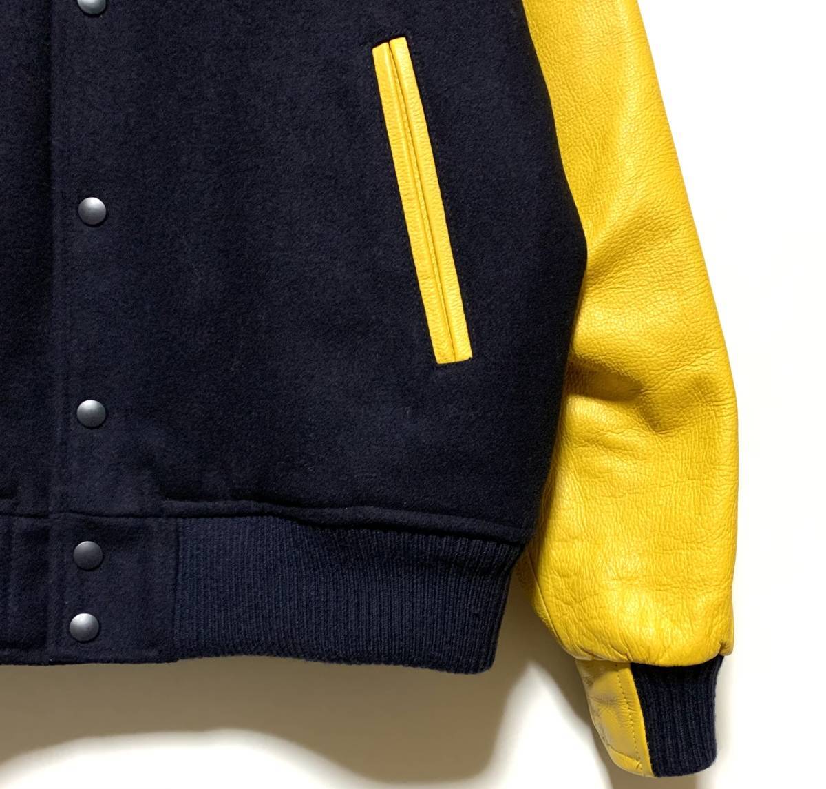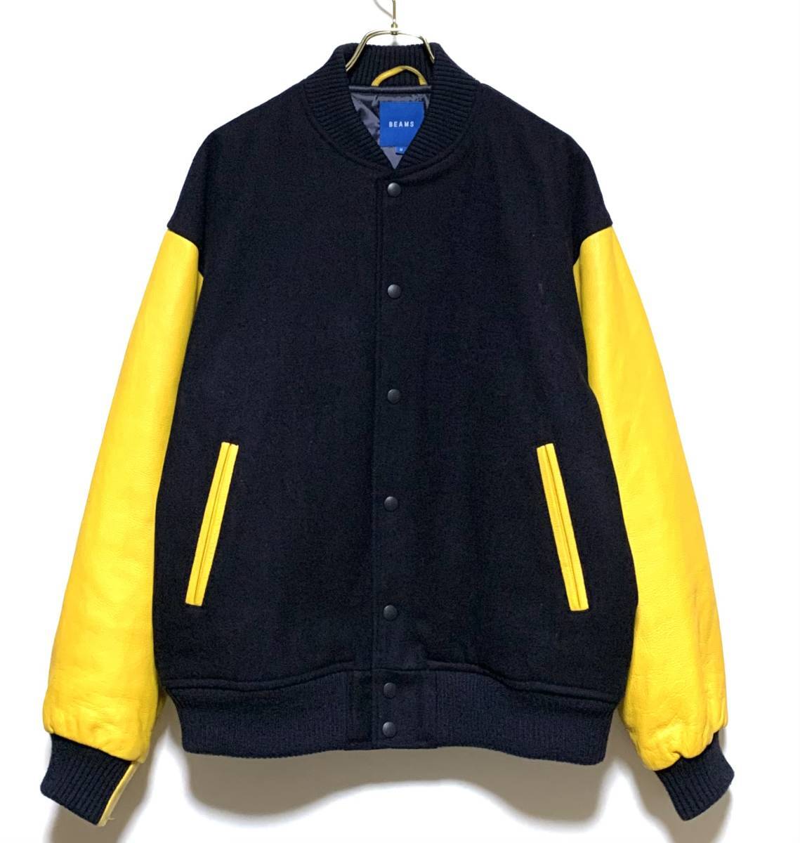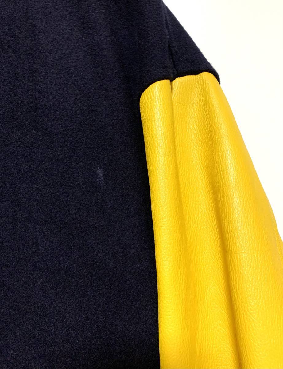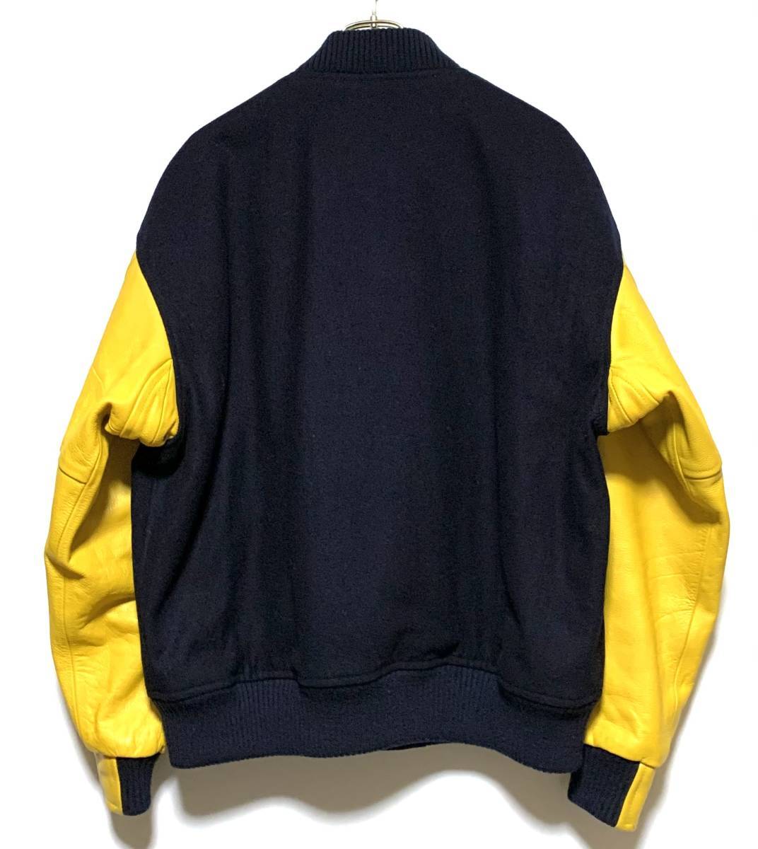BEAMS ルーズ アワード ジャケット(M)紺/黄 ビームス スタジャン メルトン レザー 本革 オーバー ビッグ サイズ ドロップショルダー