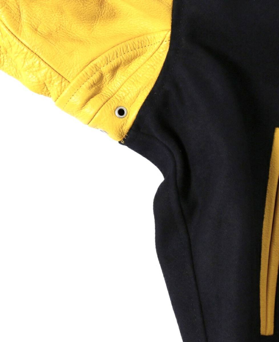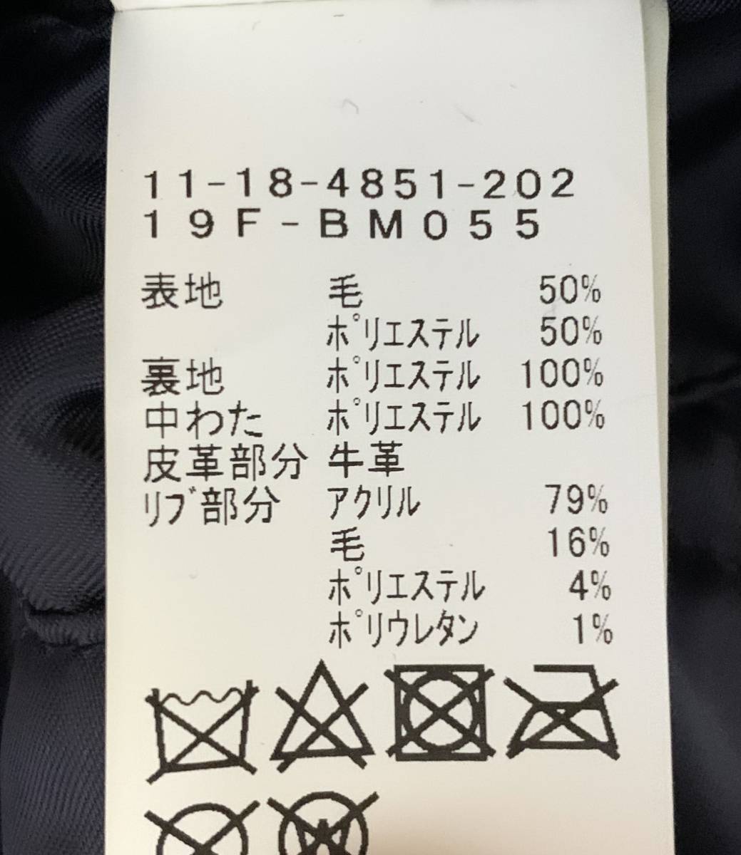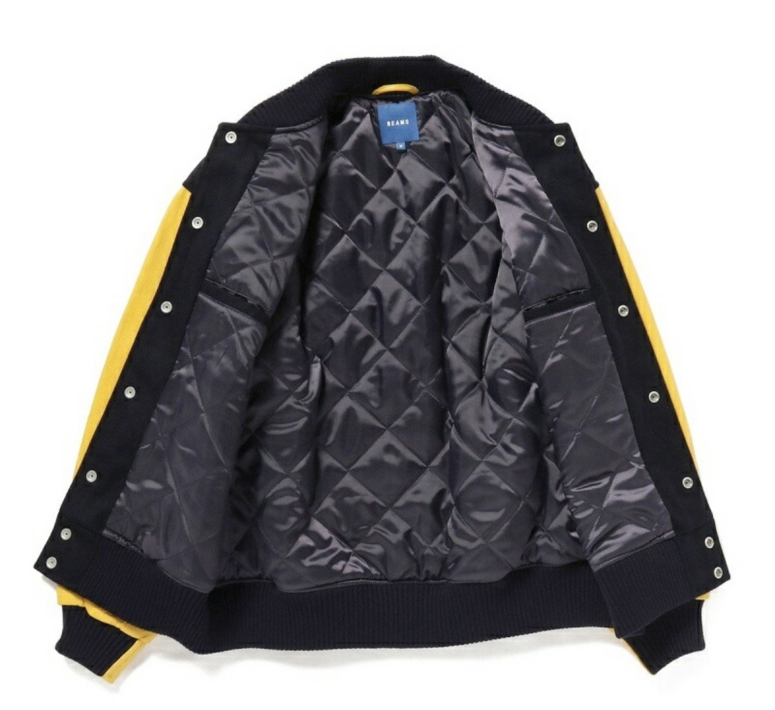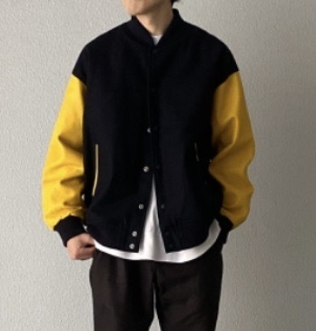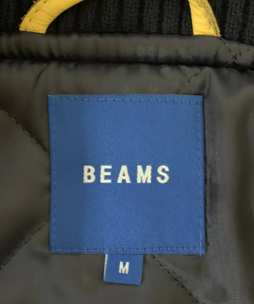 BEAMS ルーズ アワード ジャケット(M)紺/黄 ビームス スタジャン メルトン レザー 本革 オーバー ビッグ サイズ ドロップショルダー