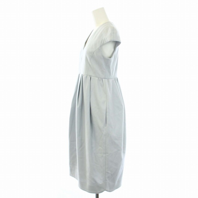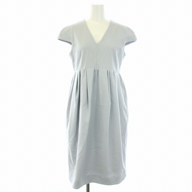 ヨーコチャン 17AW V-neck Gathered Dress ワンピース ひざ丈 Vネック フレンチスリーブ 38 M 水色 ライトブルー YCD-417-351 レディース