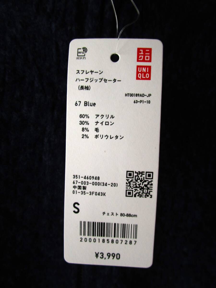 【未使用】スフレヤーンハーフジップセーター ユニクロ / 2023年秋冬メンズ用 / 67 BLUE / サイズ S / 商品番号: 460948