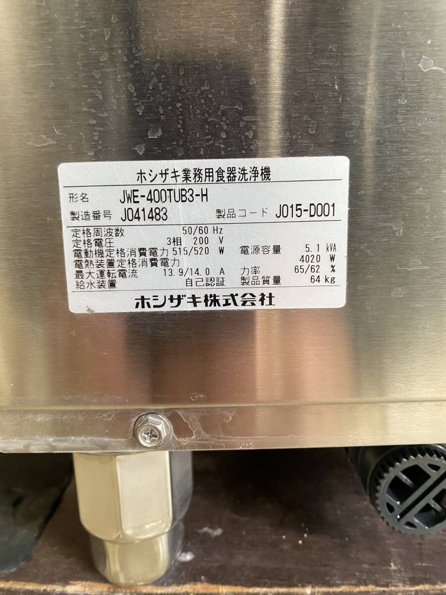 w241212-1 2019年式 ホシザキ 業務用食器洗浄機 JWE-400TUB3-H
