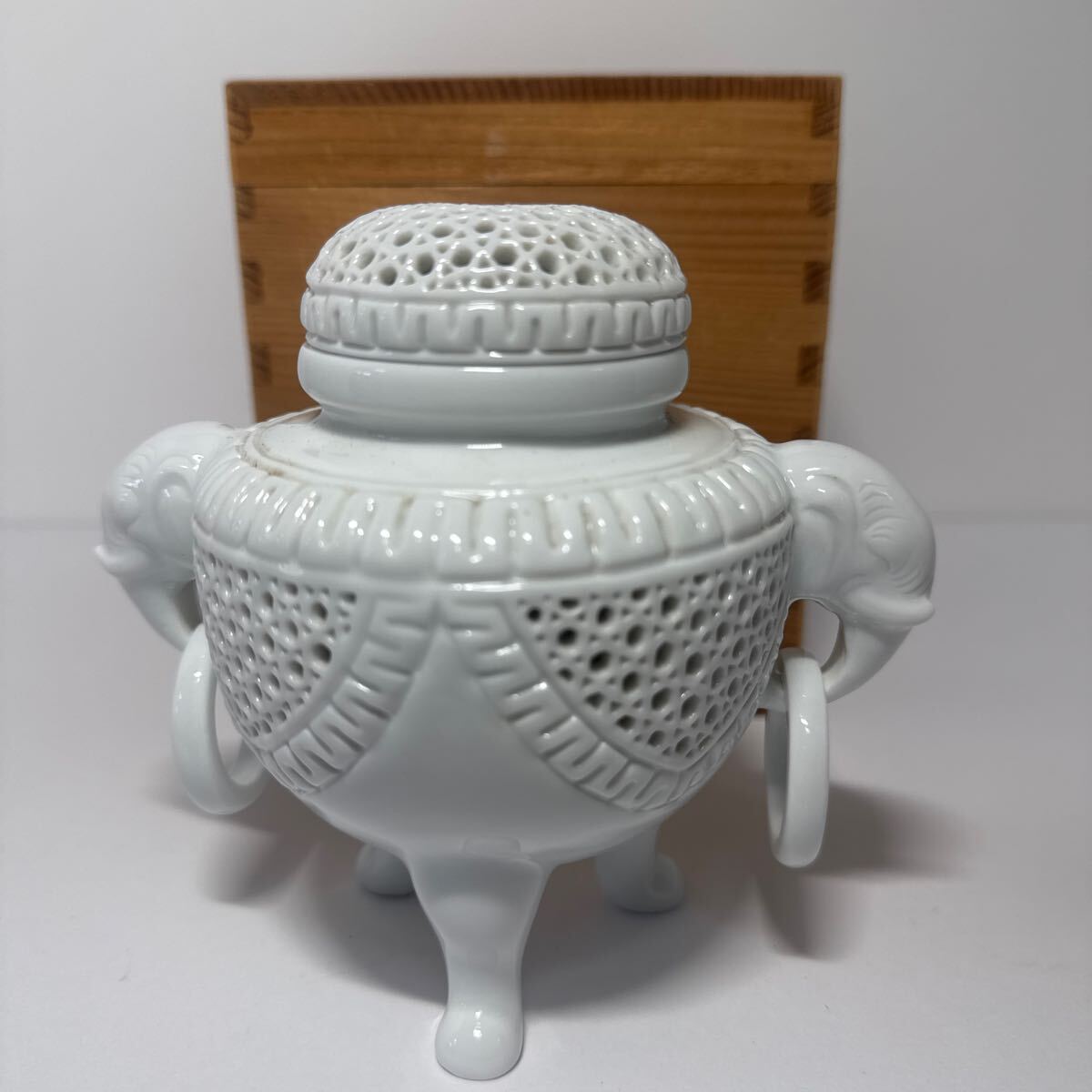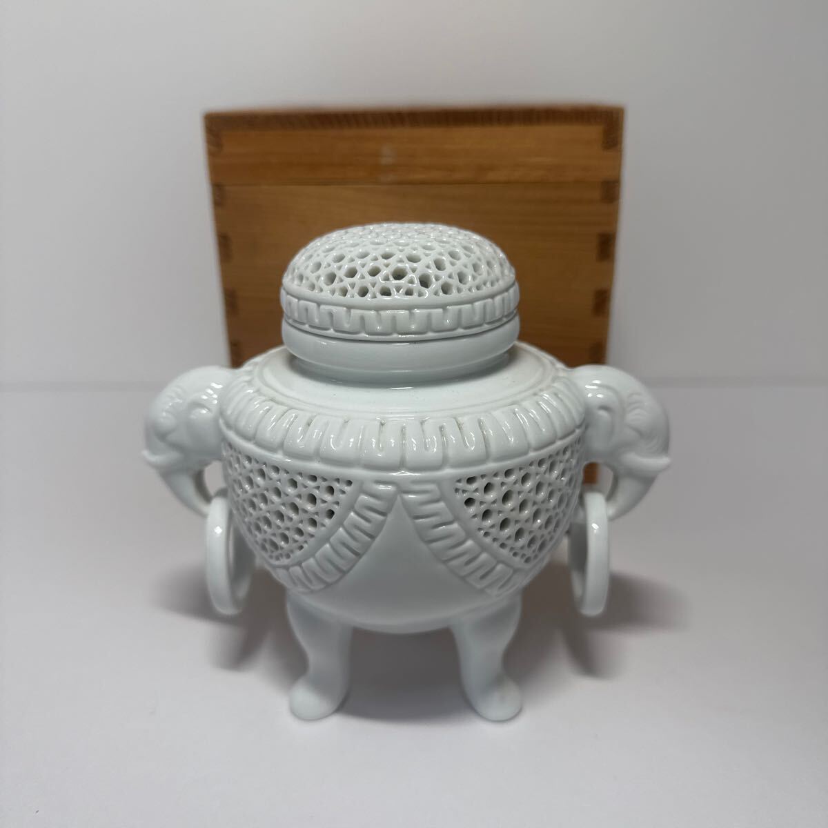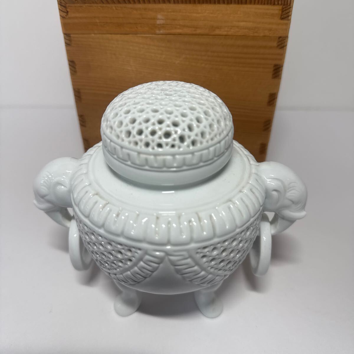 初出し品 有田焼  香炉  三足香炉 白磁 共箱 ★広島発送★